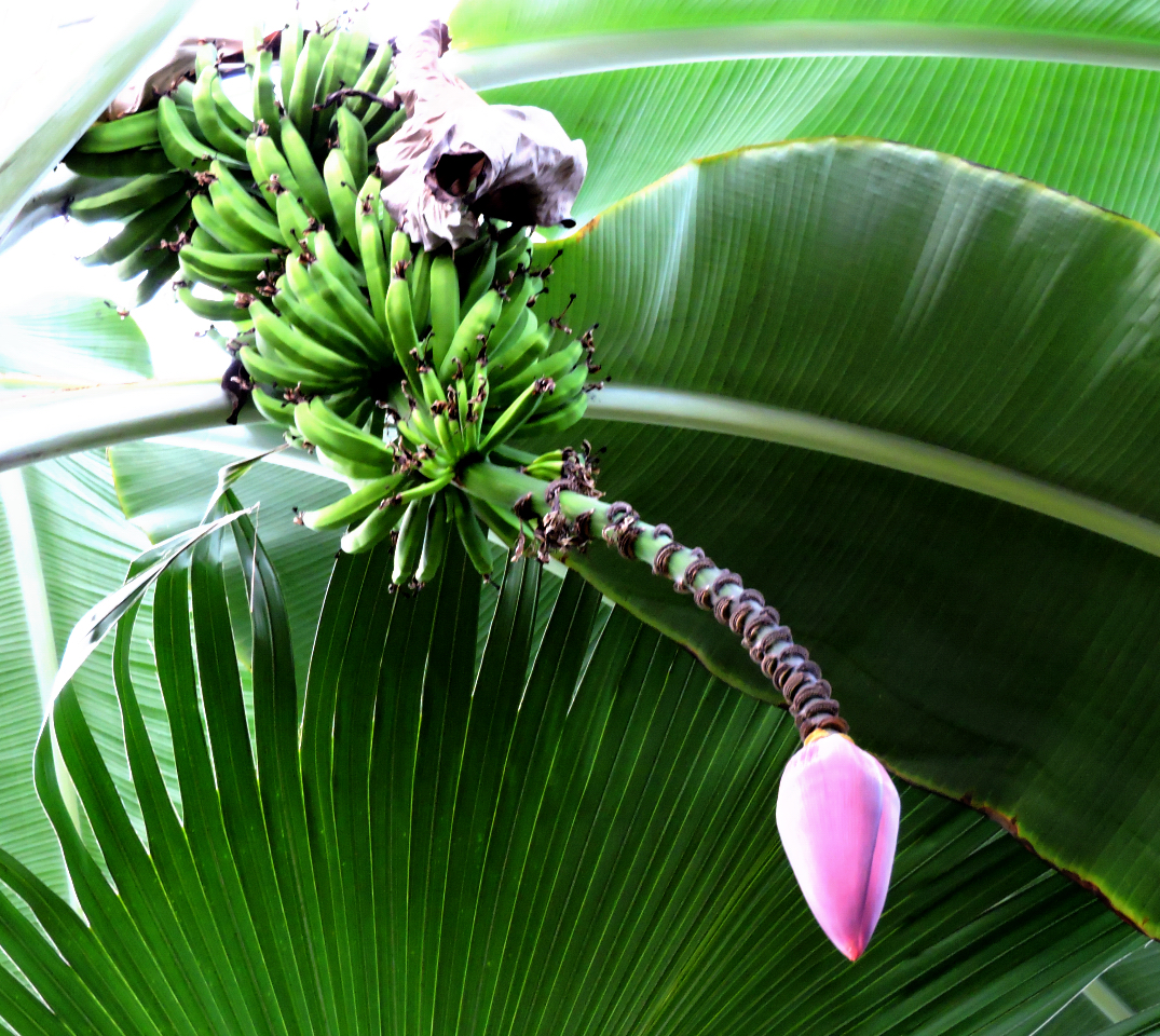 Vi hittade ett bord under Kanariebananen, högt upp under taket fanns en bananstock.