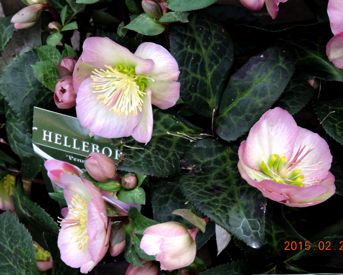 Julrosor i många färger från vitt över rosa till mörkt köttröda och likaså