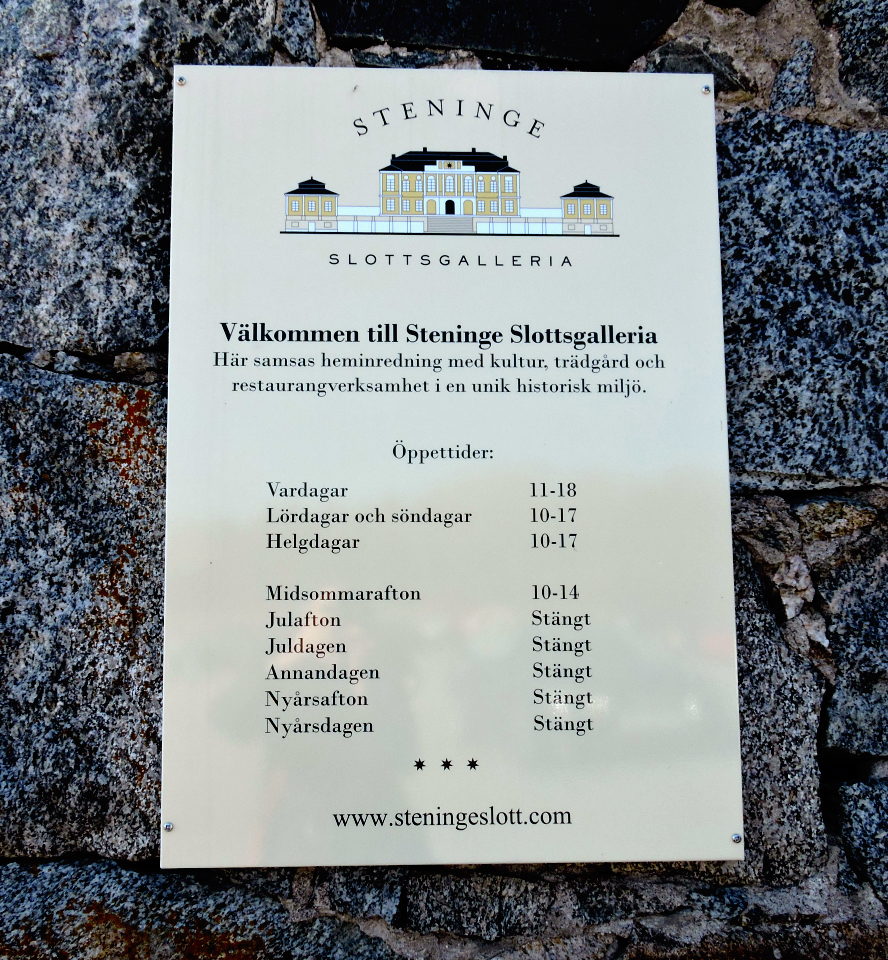 Ett av utflyktsmålen på måttligt avstånd från Väsby för bilburna är Steninge. Vid en Mälarvik ett par kilometer från Märsta ligger Steninge Slott, som en gång ritades av far och son Tessin. Slottet har bytt ägare flera gånger under senare år och är nu bebott som privatbostad och grindarna till slott och trädgård är stängda. Varför åker vi då hit?