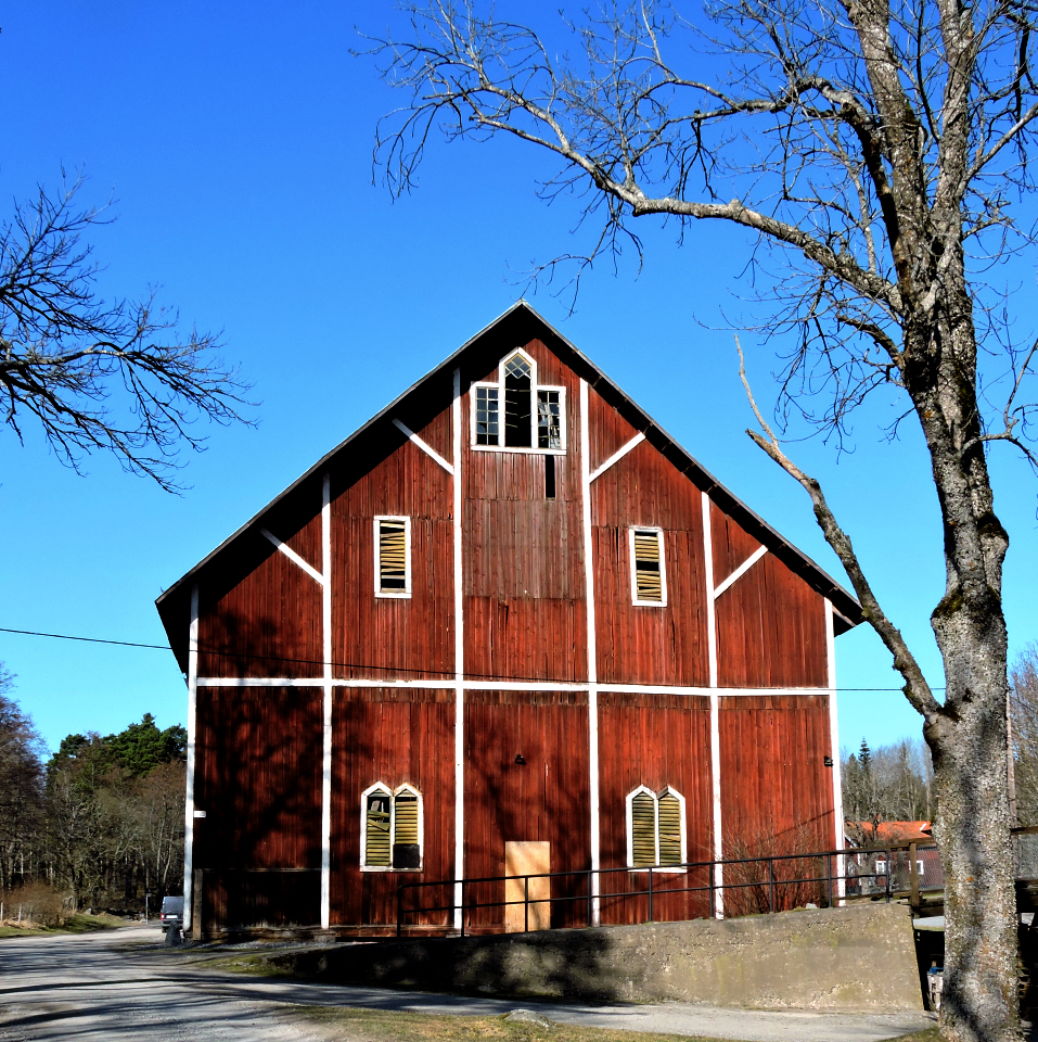 En enorm trälada med spräckta fönster och minst lika lång som stenlagården.