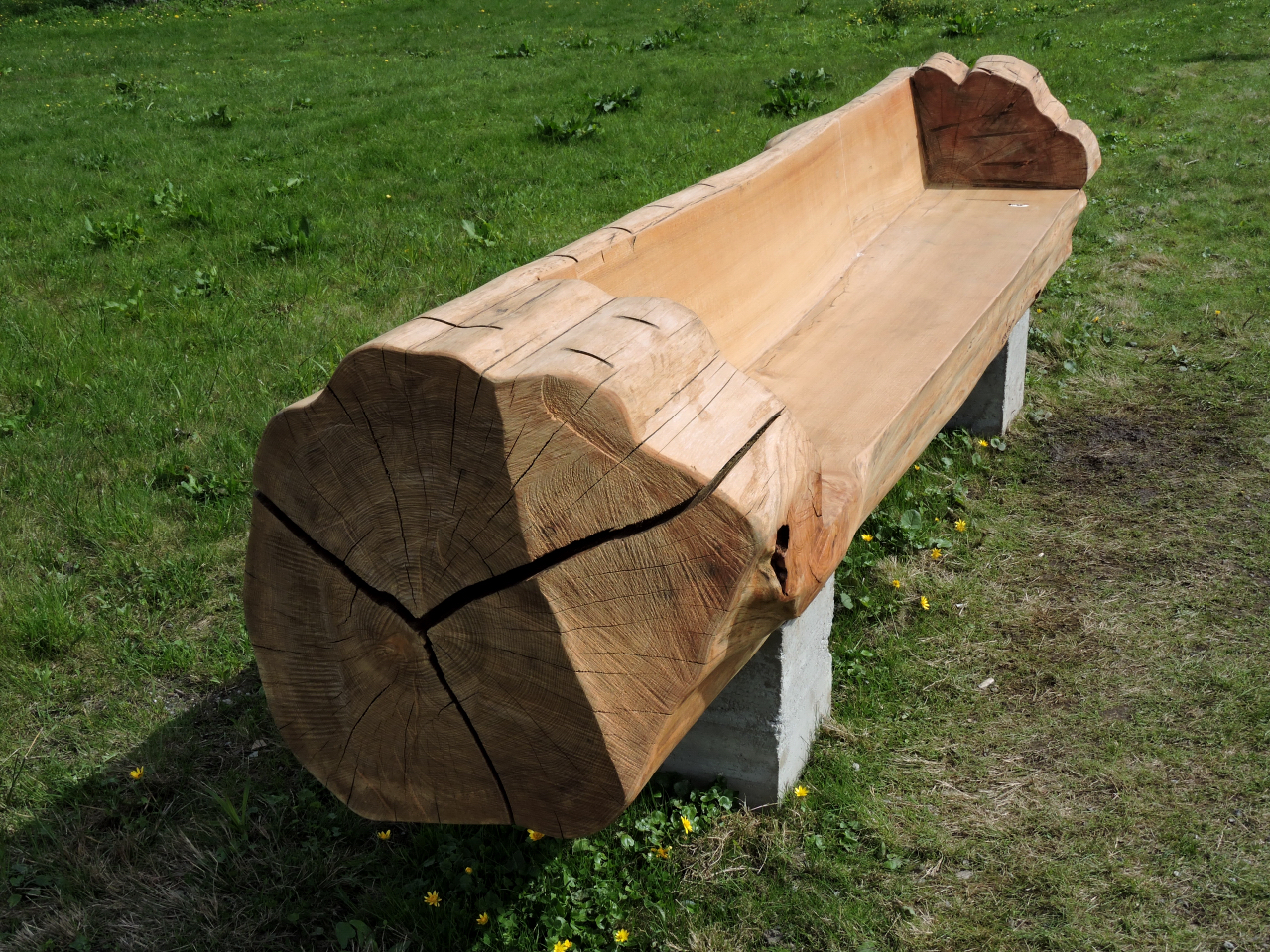 En alldeles ny soffa av en återbrukad stock intill den nya våtmarken.