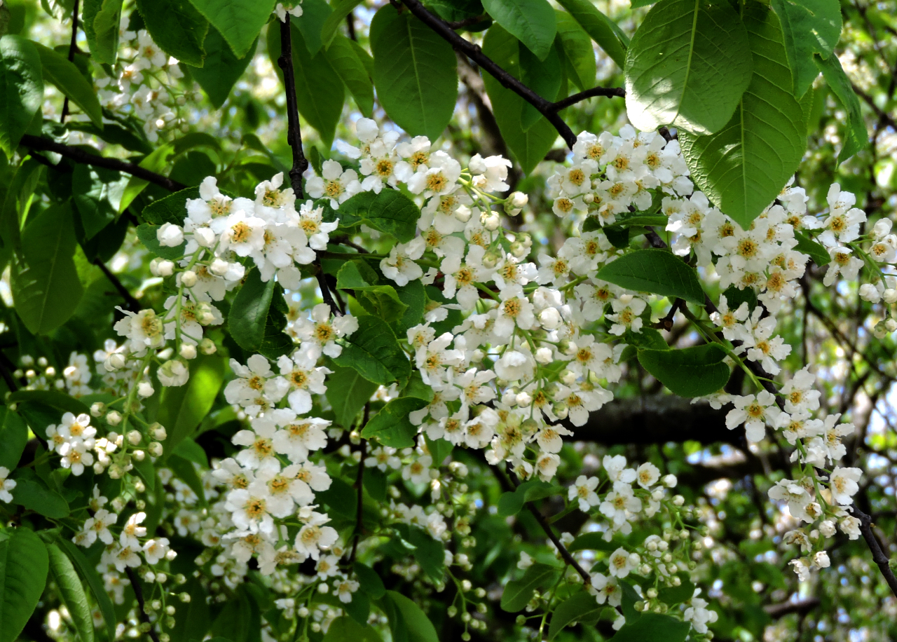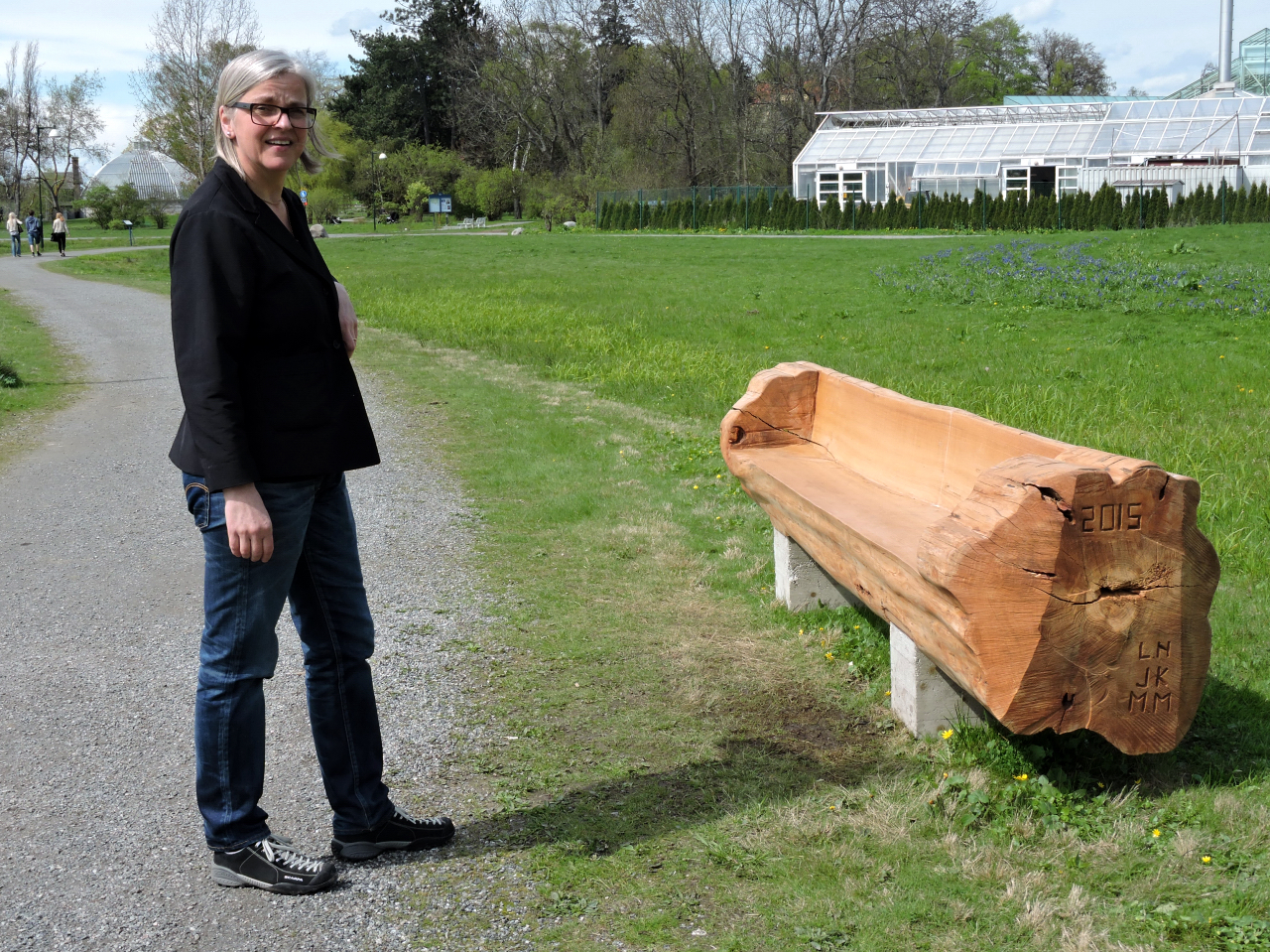 Häggen blommarEn bil bromsar in, det är Karin som tagit fel på sin besökstid och jag får sällskap på den väg jag är lite nyfiken på, nya vägen till Bergianska.