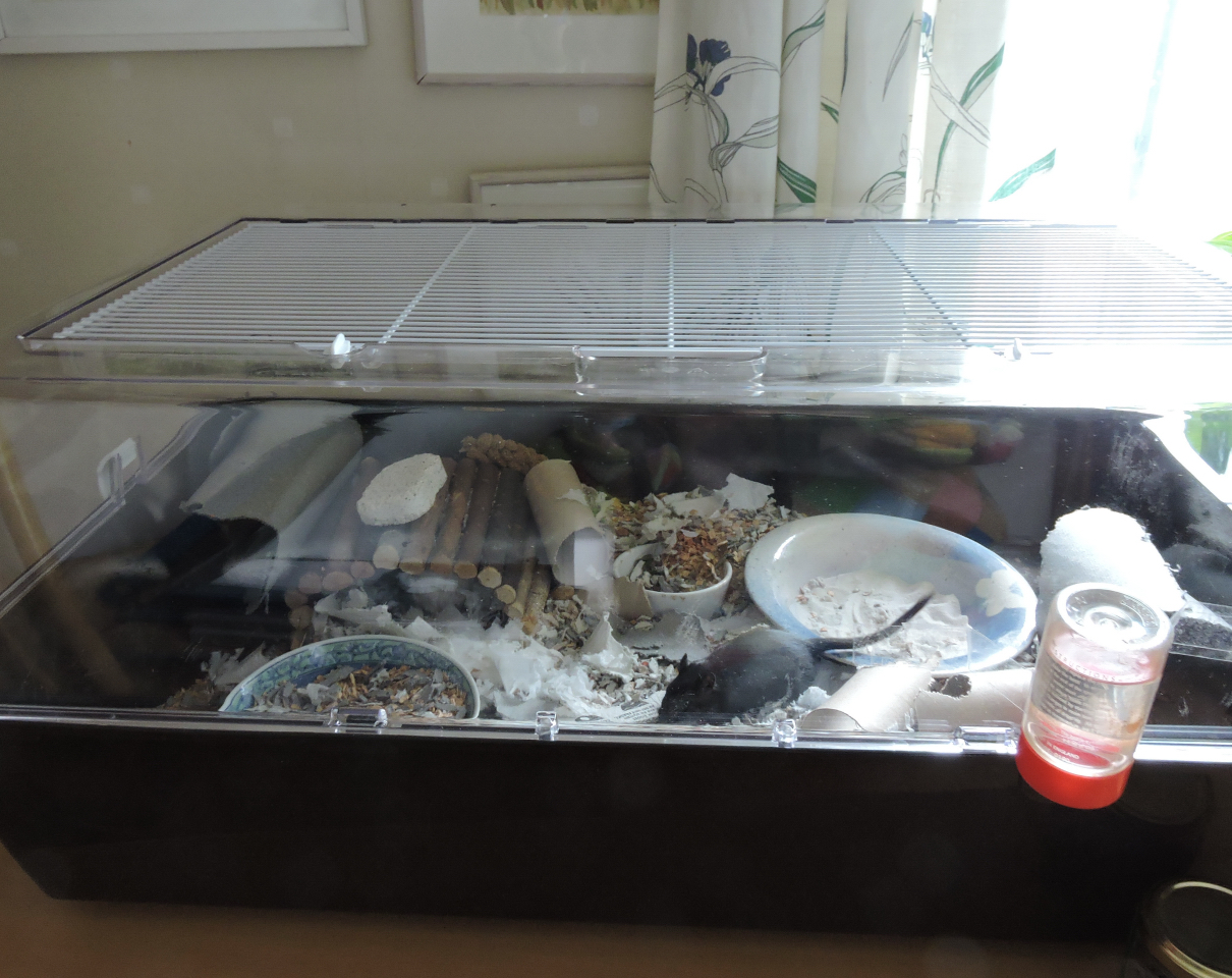 Vi har fått besök. Karin och Glenn ska äntligen fara på bröllopsresa och vi tar då hand om barnens gerbiler=ökenråttor. De bor i en större bur hemma hos sig men får klara sig med en mindre när de ska vara någon annanstans.