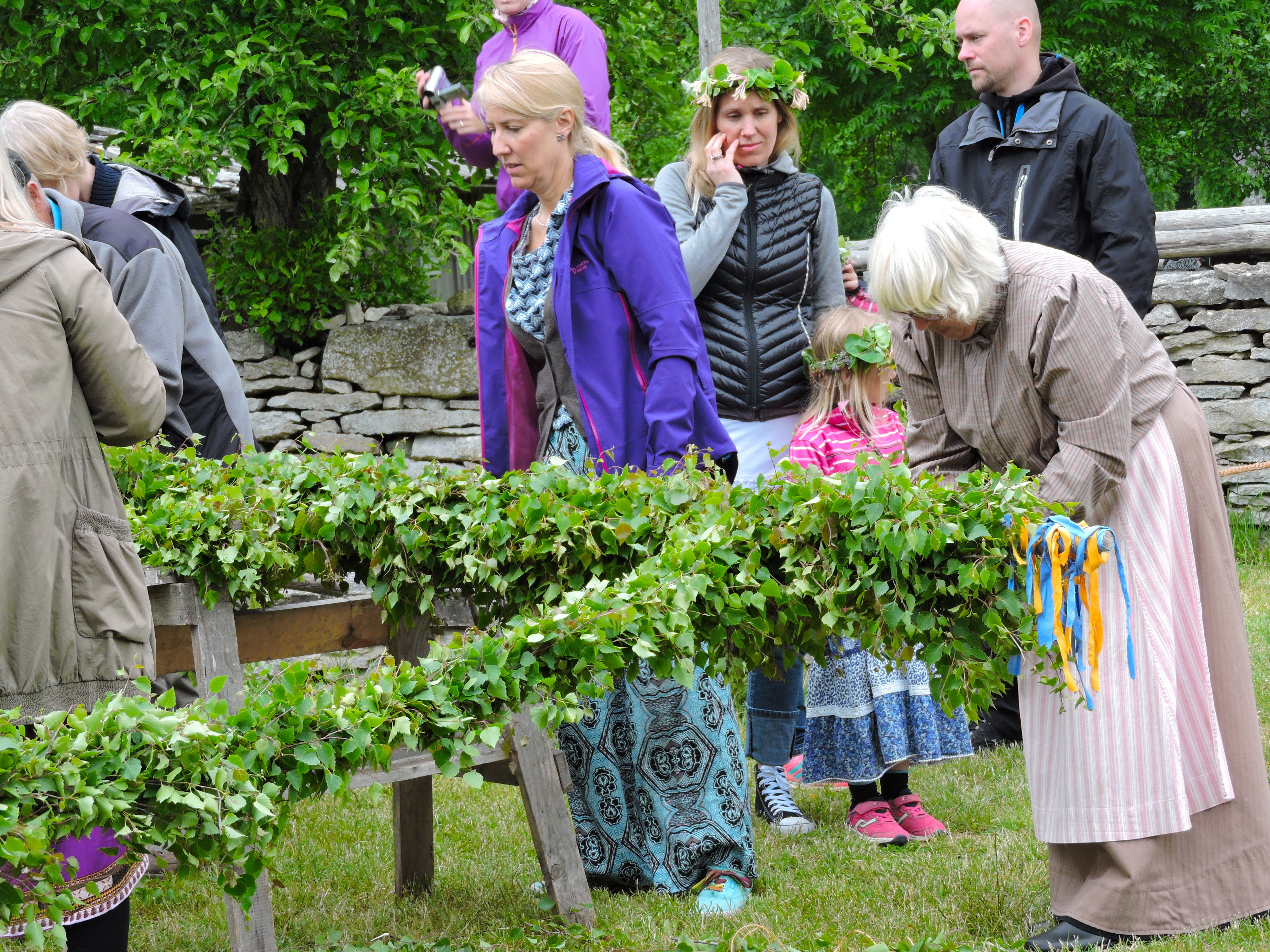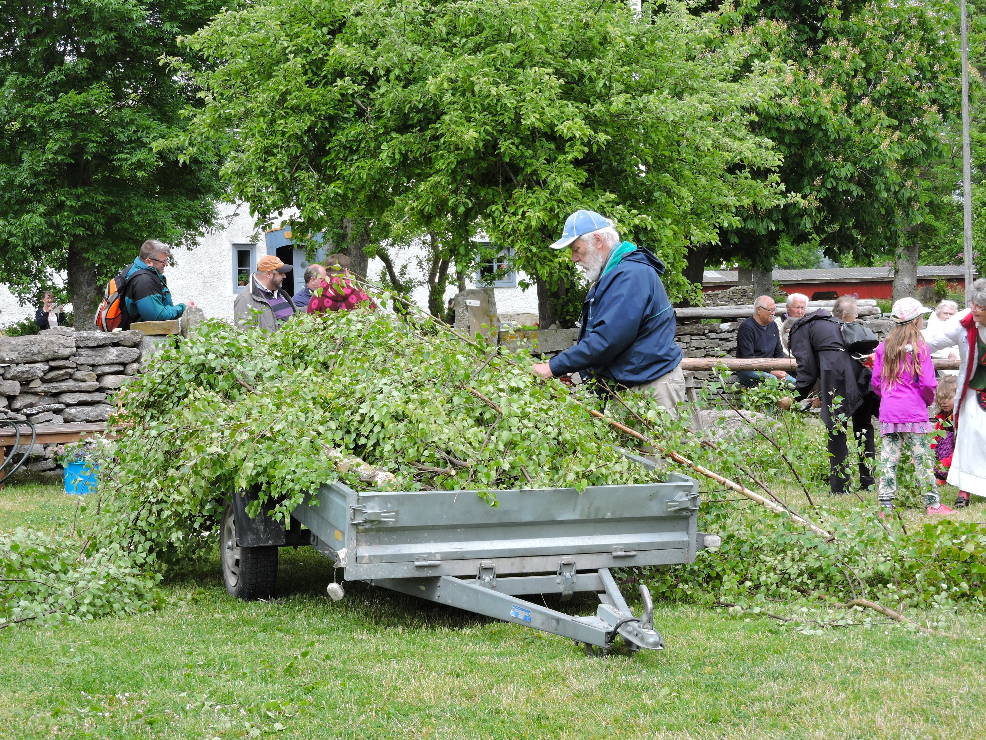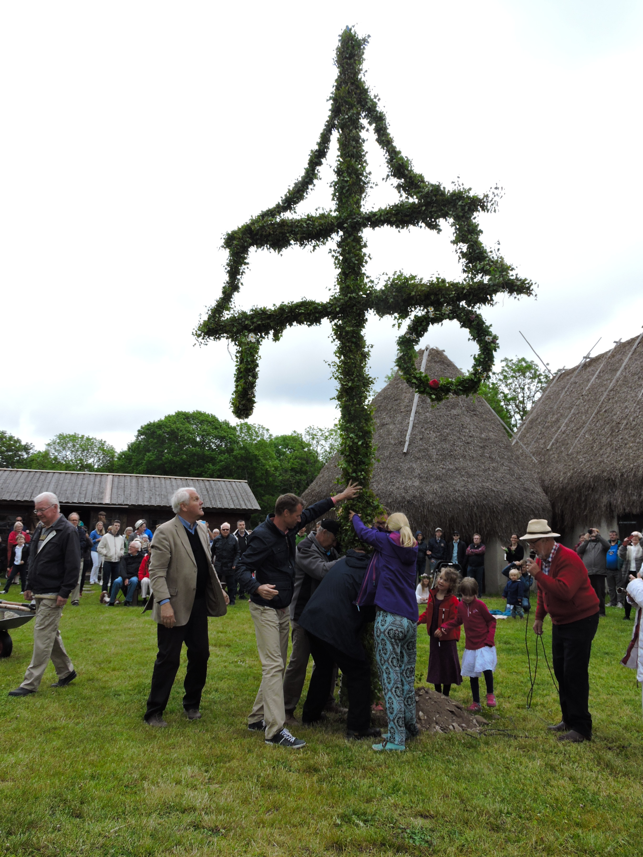 Och hänger den om ditt hårMycket folk hade samlats och satt i gräset och väntade eller i kaffestugan medan en utvald skara  klädde majstängen med björklöv.