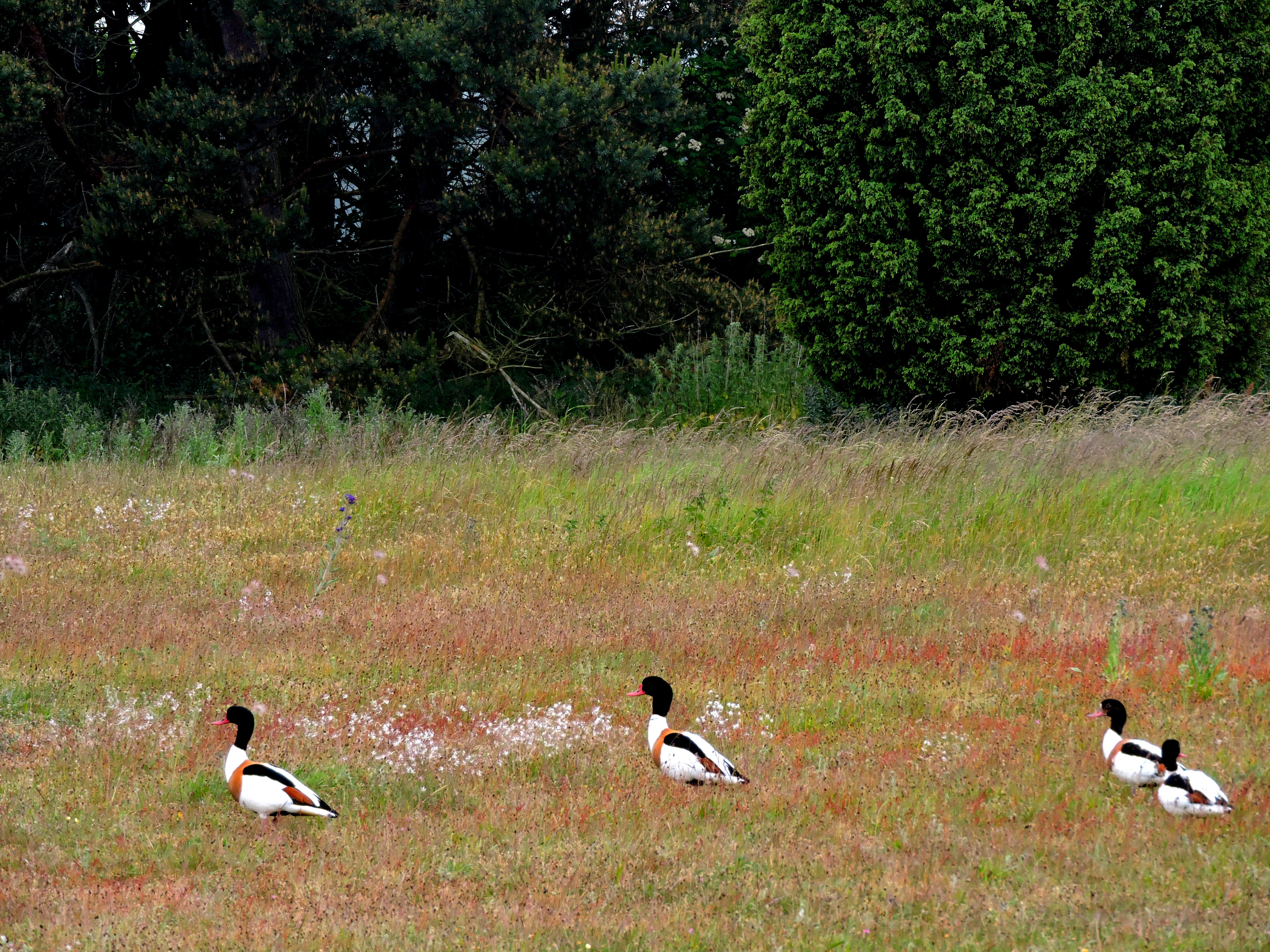 Om man drar upp gardinen före klockan sju kan man få se en rad vackra gravänder promenera, den här gången var de sex men två fick inte plats på bilden. Vid minsta knäpp lyfter alla och är borta.