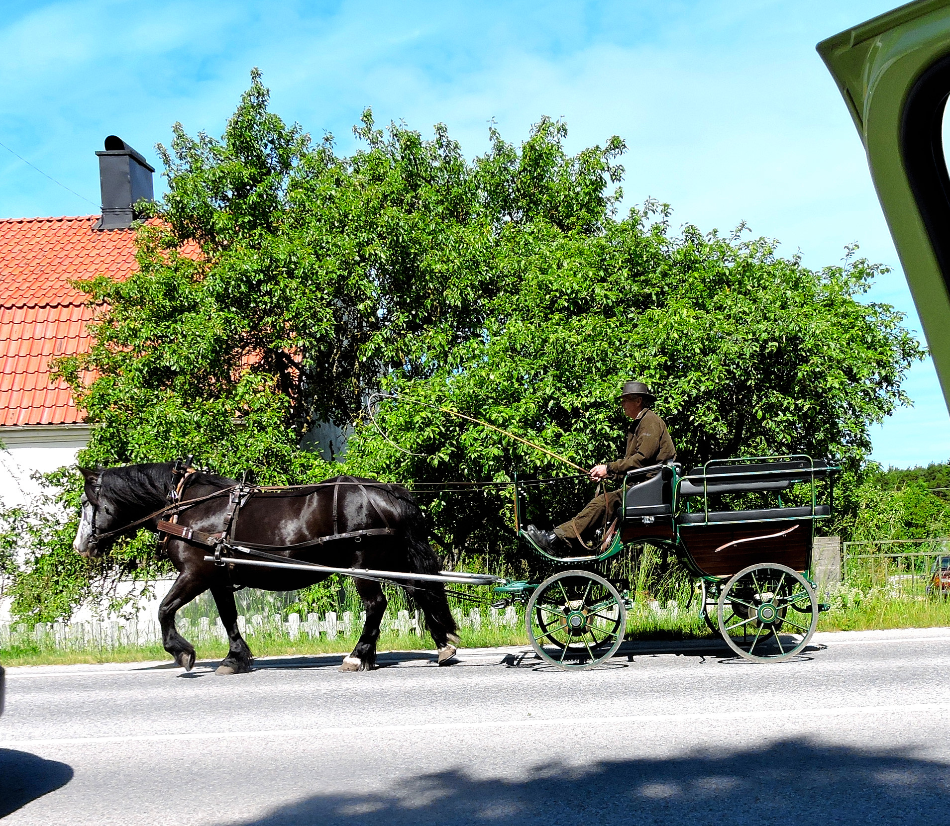 Då jag passerade Hemse på Hemsedagen mötte jag det här ekipaget. När Birgitta och jag kom till Grötlingbo för att jobba 1947, blev vi hämtade vid järnvägsstationen med något liknande. Ljudet av hästens hovar kom från en annan tid, som jag faktiskt varit med om.