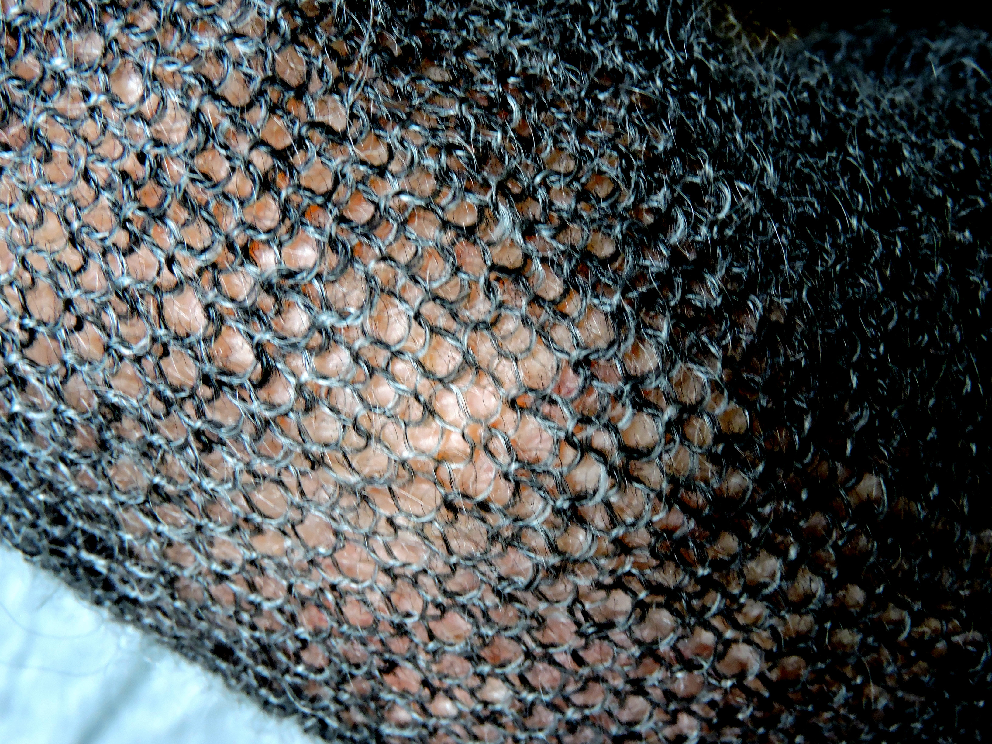 Alltså måste den mörkgrå lagas. Stoppas med garn som en strumpa? Nej. Läderlappar? Nej. Lappar i tröjans material? Ja, men var får jag tag på entrådigt garn av Gotlandsull?