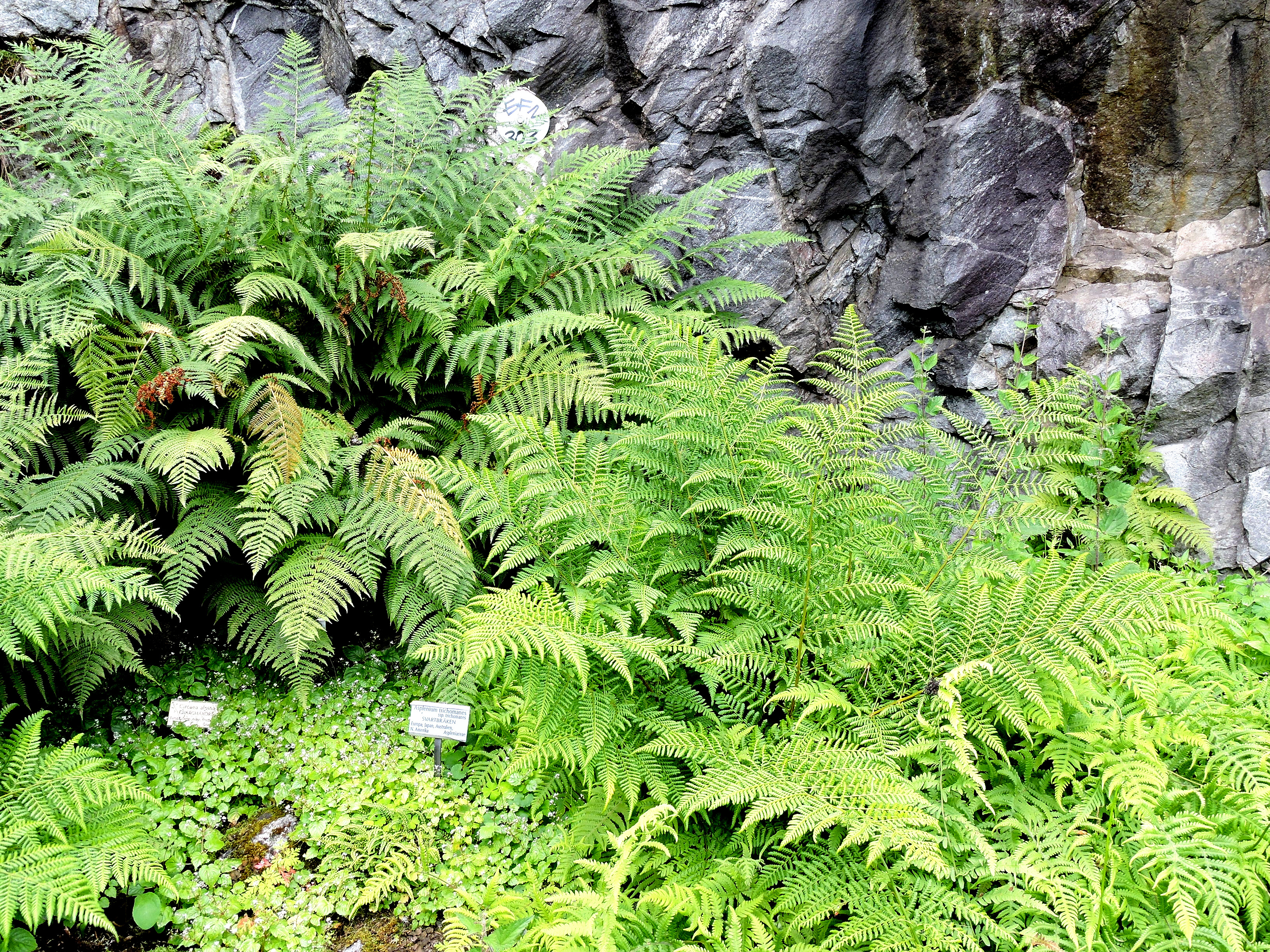 Hela bukten åt norr är nu som vackrast med alla sina ormbunkar, här är gullpudrans hörna.