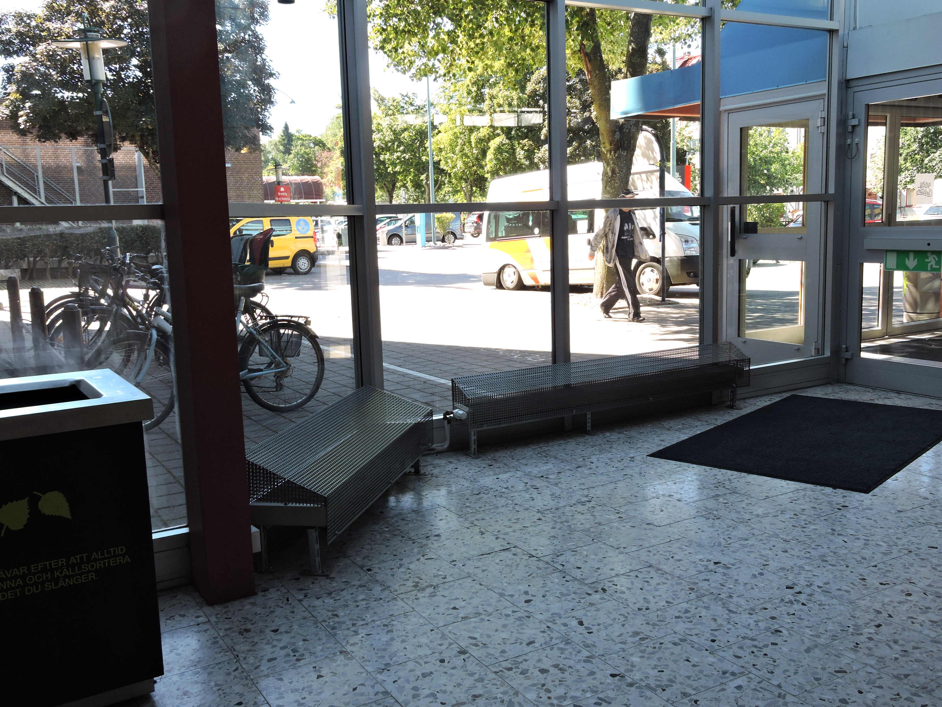 T ex finns det inte en enda soffa kvar inne under tak vid vårdcentralen om man väntar på buss eller någon person.
