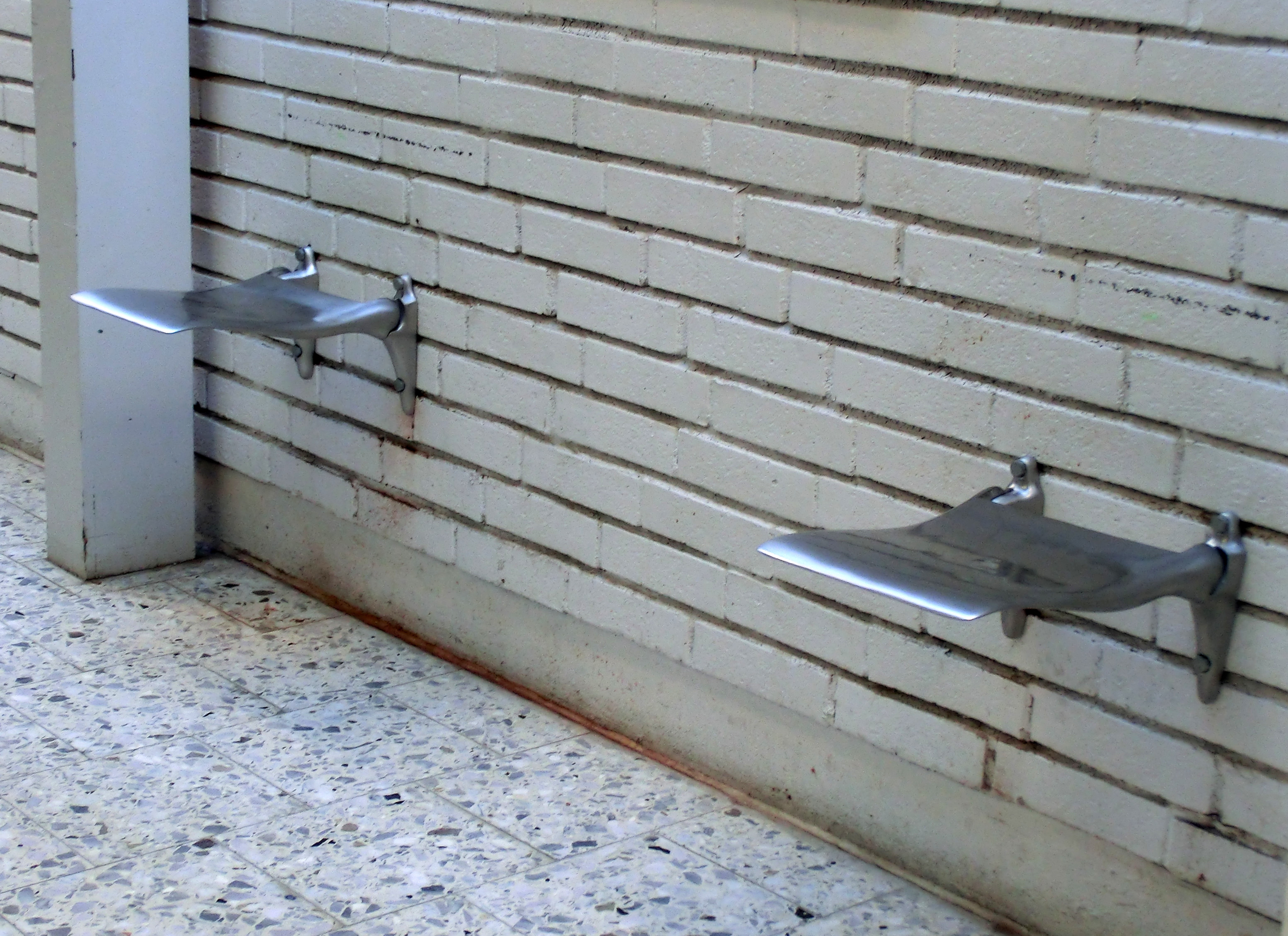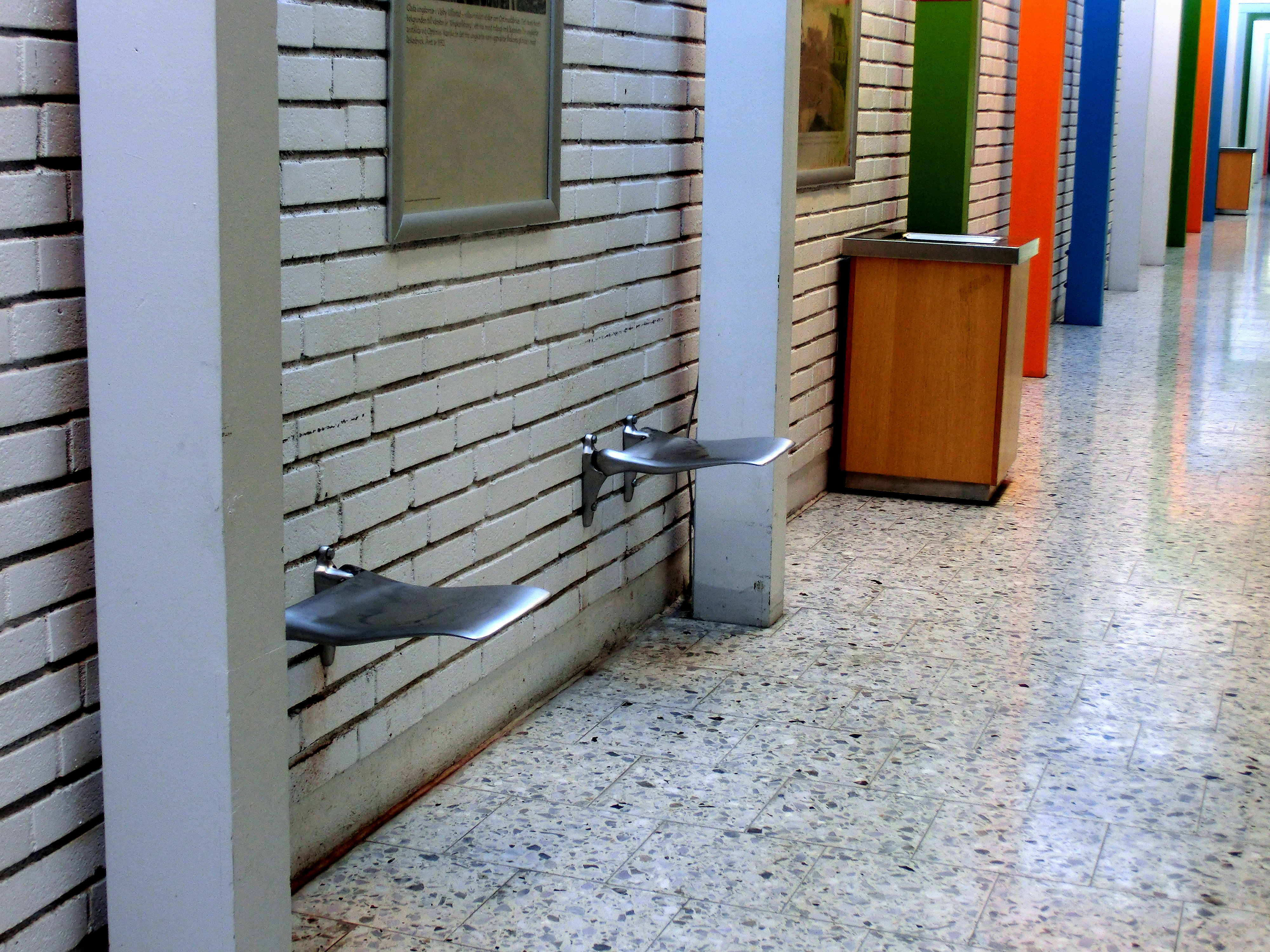För några veckor sedan klagade jag över att sofforna i huset för vårdcentral och äldreboende tagits bort och vad man eftersträvat. Särskilt soffan mittemot rehab saknas, då man väntar på någon som kommer därifrån. Några få dagar efter min blogg fick jag syn på något nytt, då jag passerade rehab. Sittplatser!! Fastskruvade i väggen och ihopfällbara. Vem läser bloggen? Har flera klagat? Tankeöverföring? Man har i alla fall gjort det möjligt att sitta medan man väntar och det är jättebra. De här sätena lär inte locka till några fyllefester eller att sova på, så de kanske går att satsa på på flera ställen.