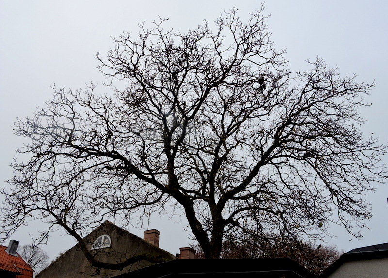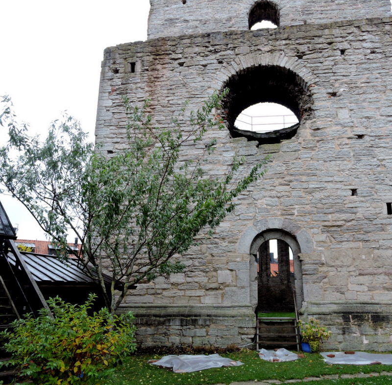 Det blåste, löpsedlarna ropade om orkan och vi hade biljett att åka hem om några timmar, jag är rädd för båtar som gungar. Innan dess ska jag i alla fall gå en runda i DBV:s trädgård. Jag kunde gått genom ruinen men valde att gå andra vägen och runda kvarteret.