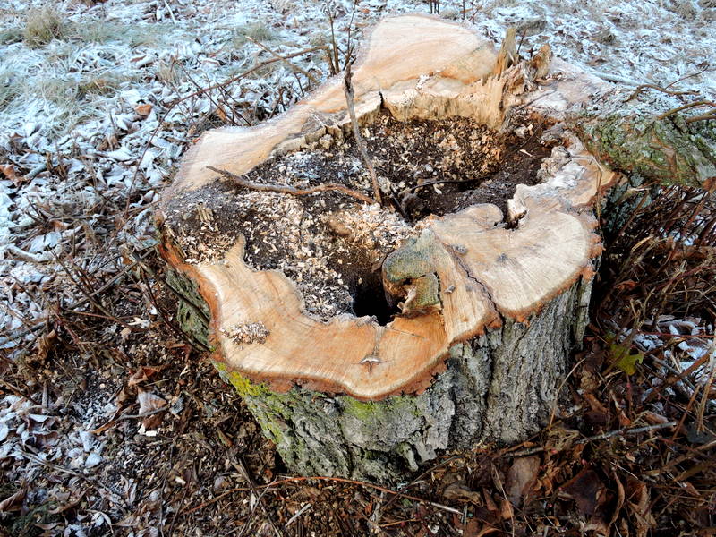 Nyligen nedsågat äldre träd .
