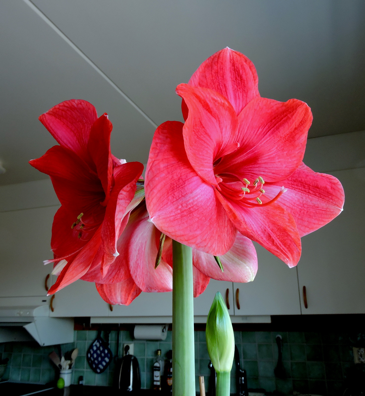 Amaryllisen vi inhandlade för några veckor sedan drog iväg på höjden och vi trodde att den inte skulle orka att även slå ut, men det gjorde den, prick på julafton.