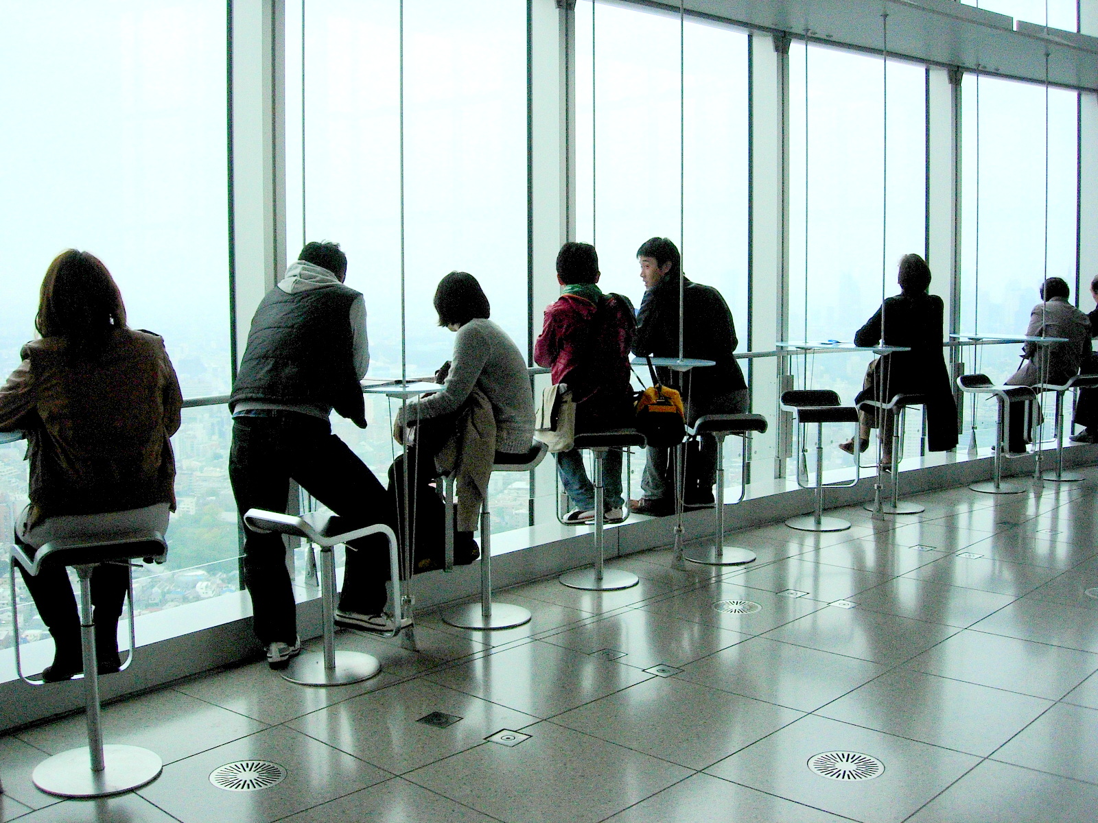 När familjen var samlad igen hade Gösta en lång lista över sevärdheter vi inte fick missa, men alla hade också jobb och skola i veckorna så det var i helgerna det blev tid för utflykter. Ganska nära där vi bodde fanns de högsta husen i Tokyo och ett av dem var öppet för allmänheten med de översta planen möblerade för utsikt och svindel. Fönster ner till golvet och fri sikt åt alla håll. 1-DSCN7942-001