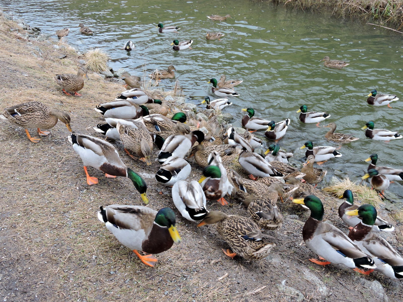 Påsen med samlade småskurna brödkanter välter nästan och då är det är dags att gå ner till ån och få känna sig välkomnad av åns alla simmare. Snön är helt borta från gatorna men gruset är kvar. Rabatterna utmed Centralvägen och överallt förresten har nog sin tristaste och mest nerslitna tid nu innan jorden tinar och skickar upp det gröna. Då är det härligt att se lite färgglada påskrisfjädrar.