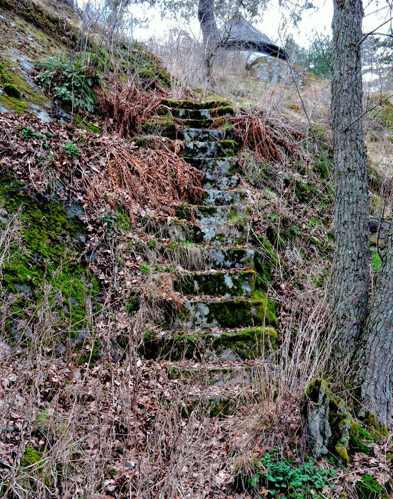 En hemlig trappa upp till ett hus med toppigt tak