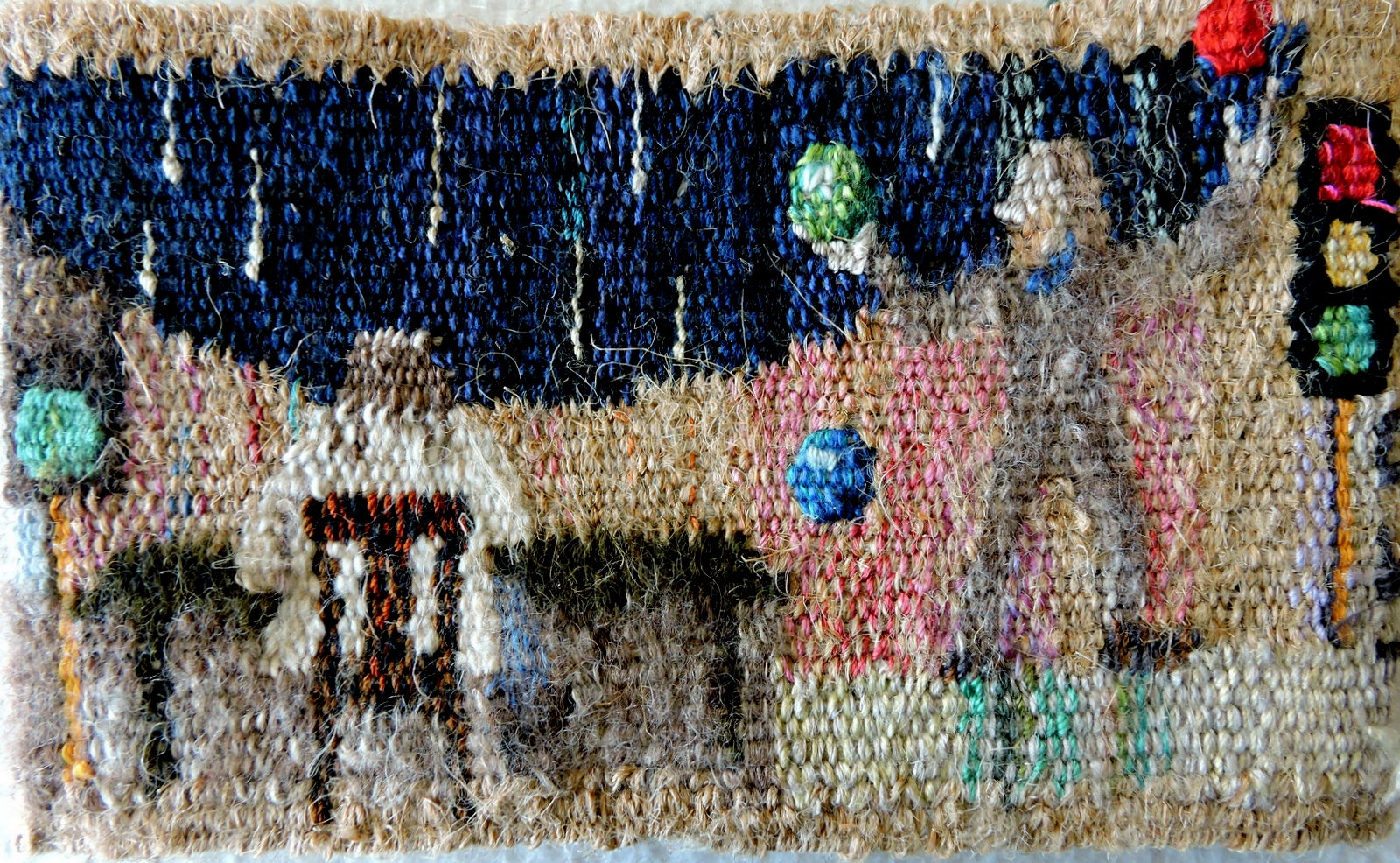 Väven är 9 cm hög och 30 cm lång och har ingen ände.