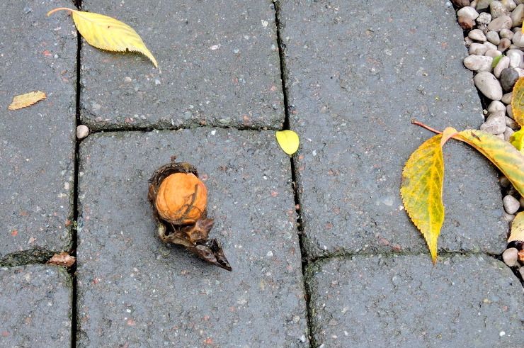I november var vi på Gotland och löven hade fallit. På marken låg också mandlar och valnötter och vi plockade med oss några av vardera och tänkte knäcka dem framåt jul. Vi smakade på några valnötter och de var fina, men sen nänndes vi inte öppna alla utan en handfull blev liggande till påseende. Mandlarna var också fina men smakade väl mycket bittermandel.