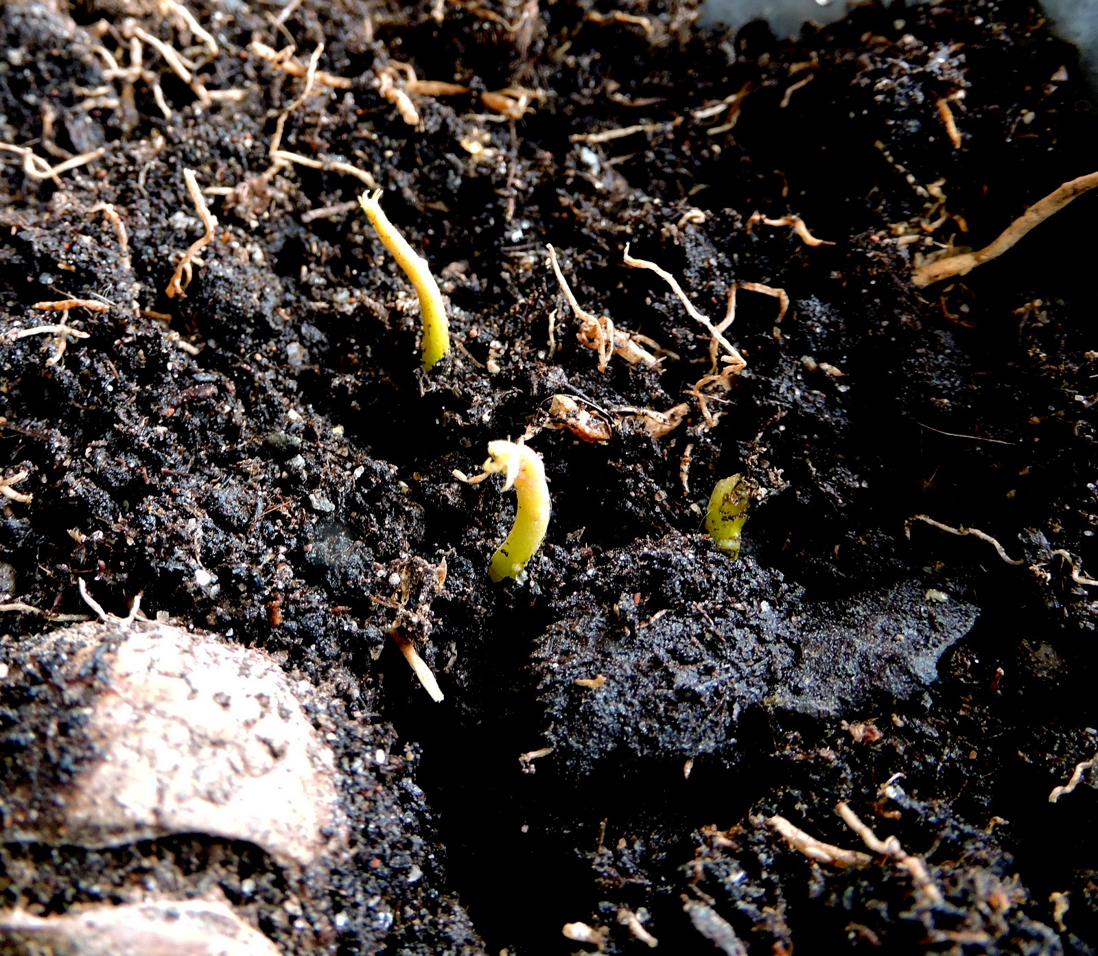 De skickade först ut rötter och förankrade sej och sen något litet grönaktigt som gick uppåt.