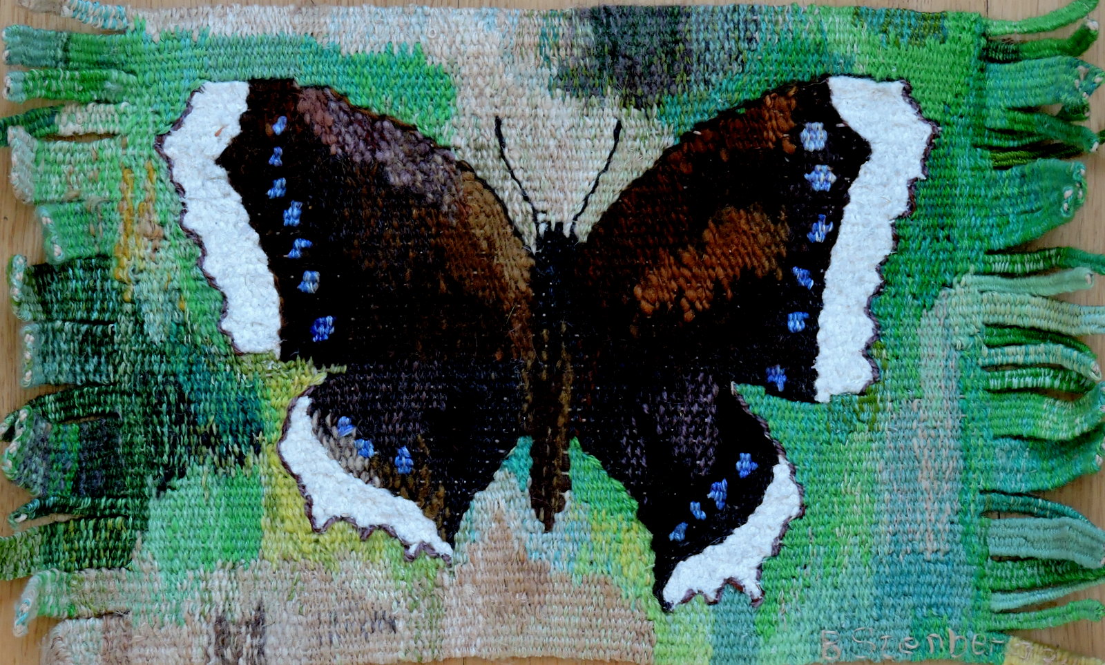 När sedan en fjäril, en sorgmantel, fladdrade in på Alvägen och satte sej i gräset och var den skönaste den sommaren, såg jag vad jag kunde göra av de sista garnmetrarna. Då hade väl en och annan rapport börjat dyka upp med beskrivning av hur många äldre arbetare som dött i en form av lungcancer.