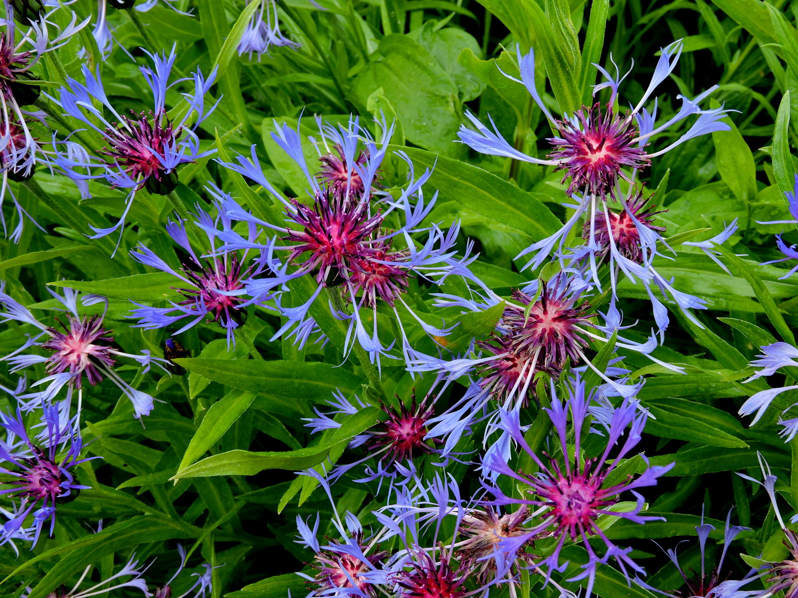 Blåklint och mellan buskar och rabatter blommar just nu prästkragar i mängder