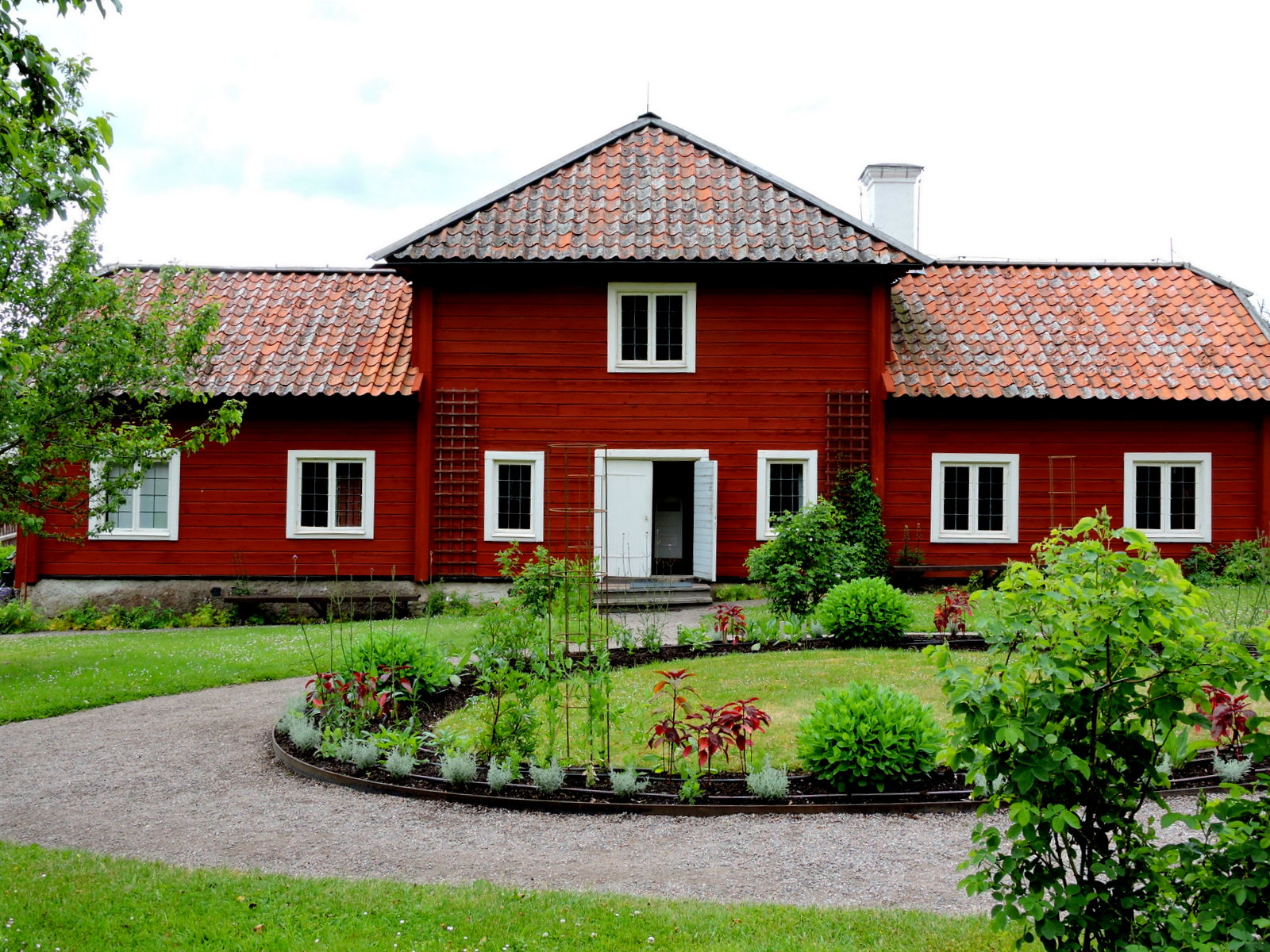 Man får inte gå in i huvudbyggnaden utan att bli guidad. Eftersom trappor är knepigt för en person med rullator, avstår man frivilligt från att gå in. Vi har dessutom sett huset flera gånger utan guide och utan avgift och det jag gärna hade sett ännu en gång var skåpet för herbarieväxter.
