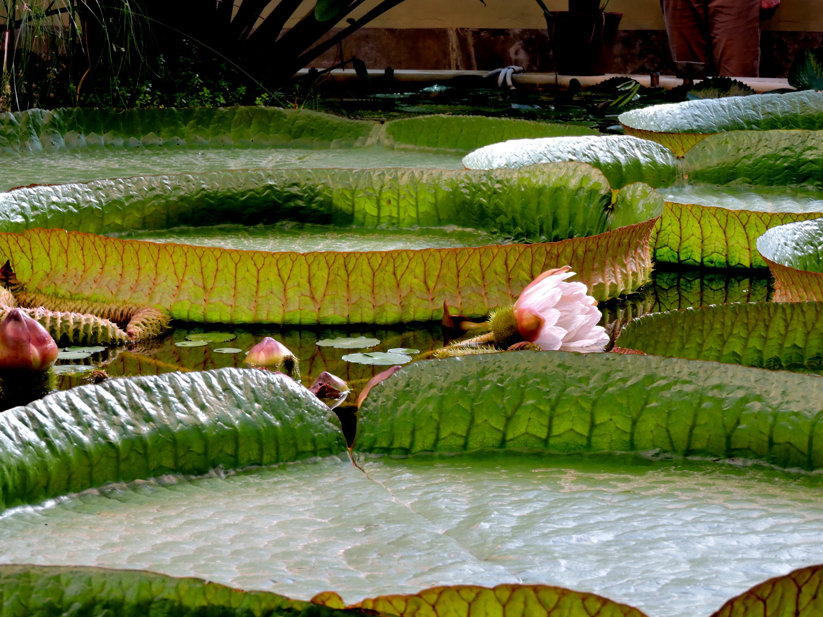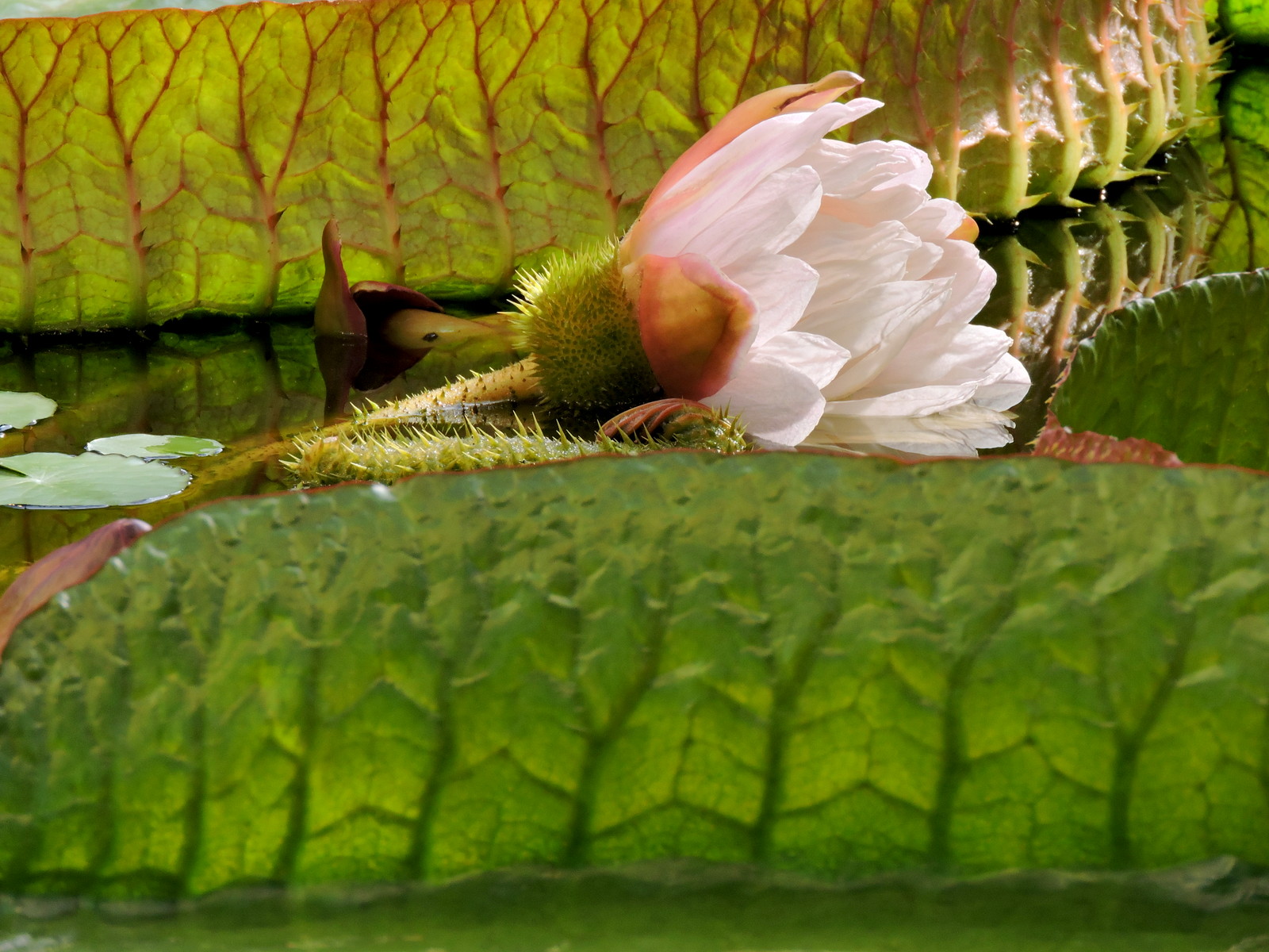 Jättenäckrosen som huset är byggt för, blommar nu om nätterna och en rad knoppar väntar på att slå ut