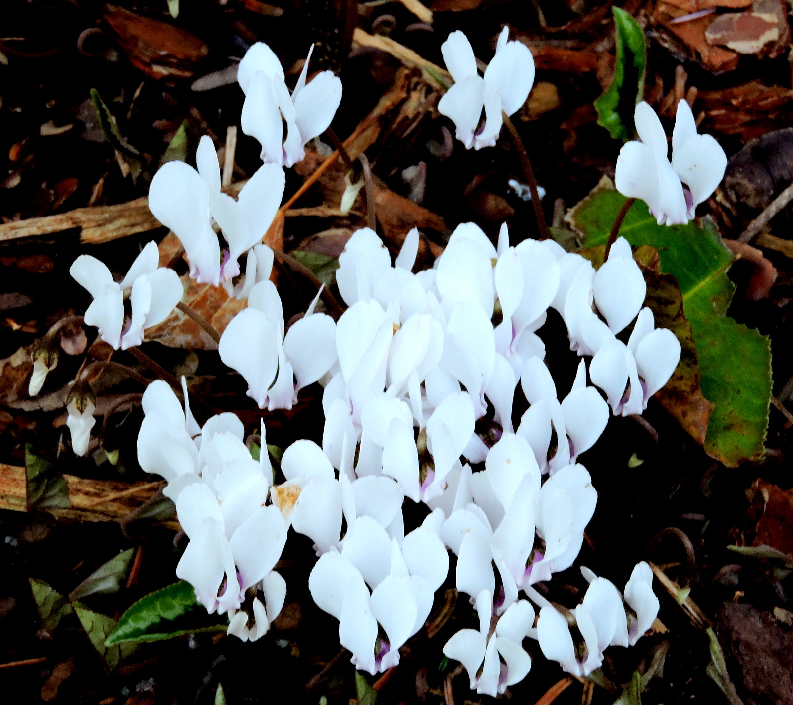 Är det höstkrokusar under de vida granarna? Nej det är höstcyklamen.