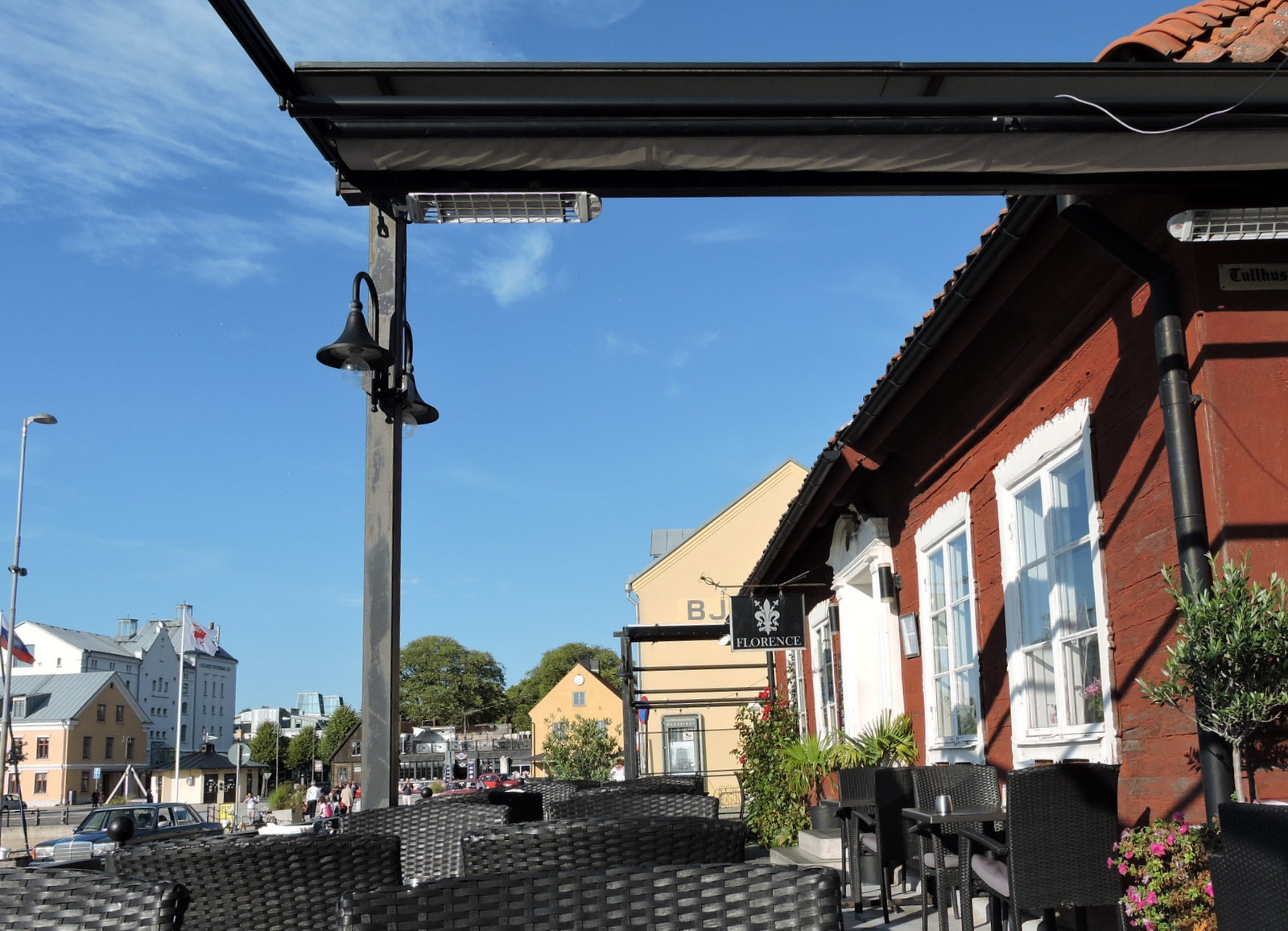 Serveringarna längs hamnen är tomma, ingen konst att parkera på gatan utanför.