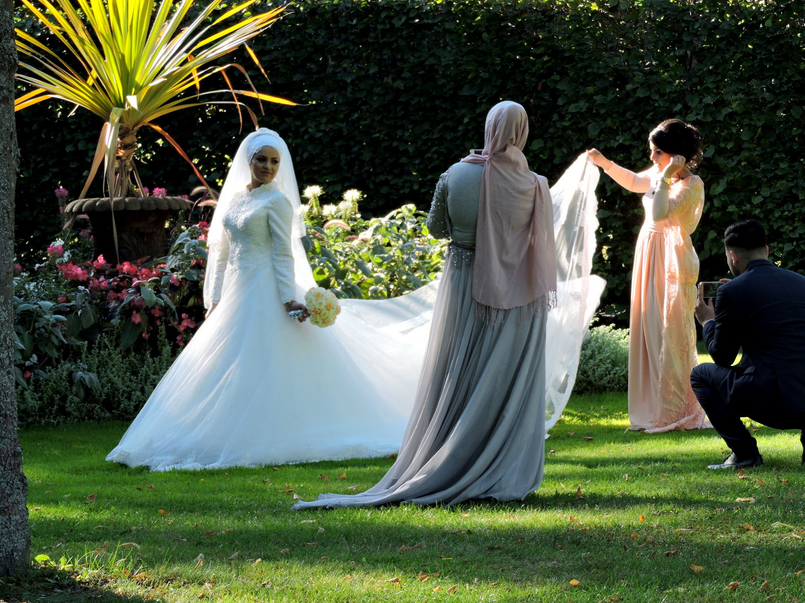 På andra sidan gräsplanen var en folksamling, finklädda, ett bröllopsfölje ? men inte det vanligaste.