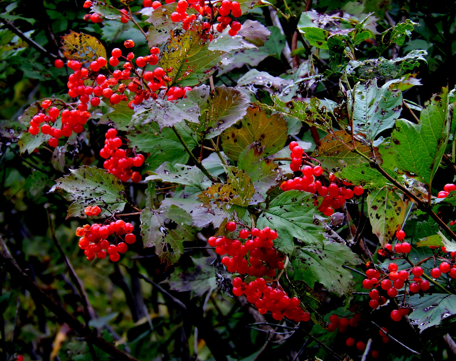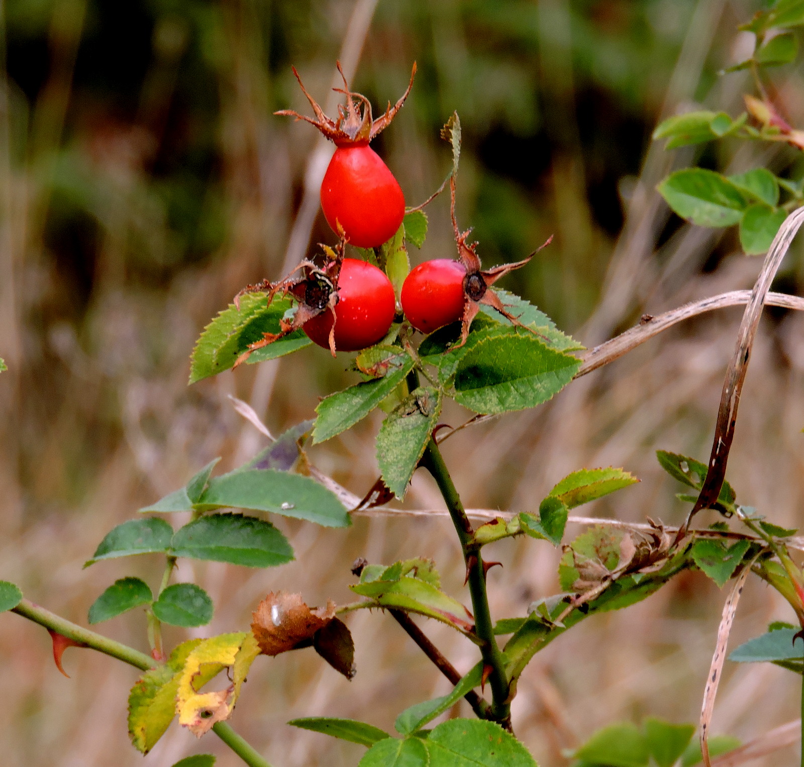 Mängder av nypon lyser rött i de flesta buskage.