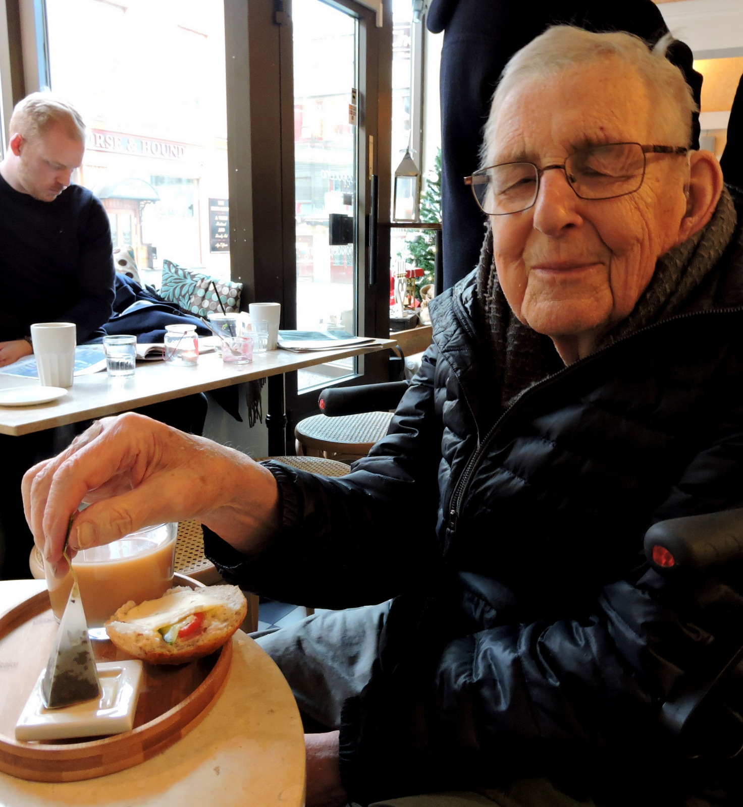 Selina lotsade oss till ett fik nära domkyrkan och där var det tepåsarna som gjorde intryck. Vad läser Selina? Till maskiningenjör med inriktning på design och produktutveckling. Det kan ta fem år.