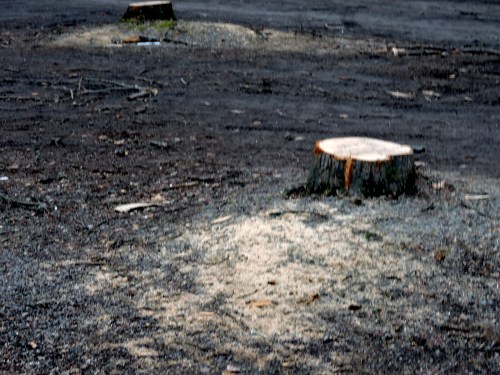 Alla sågytor ser färska ut, sågspånen har inte blandat sig med övriga marken än, det här måste ha skett ganska nyligen.