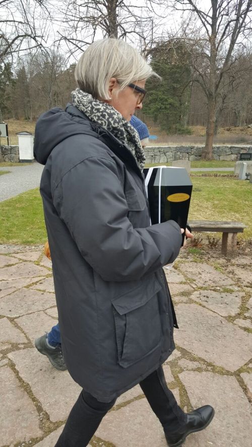 Lasses aska fick ett datum i påskveckan för gravsättning, det råkade bara bli så. Vi, Karins och Niklas familjer träffades utanför Eds kyrka i tisdags, det var en blåsig och kall dag. Vi fick hämta urnan i kyrkan där vaktmästaren hade placerat den framme vid altaret.