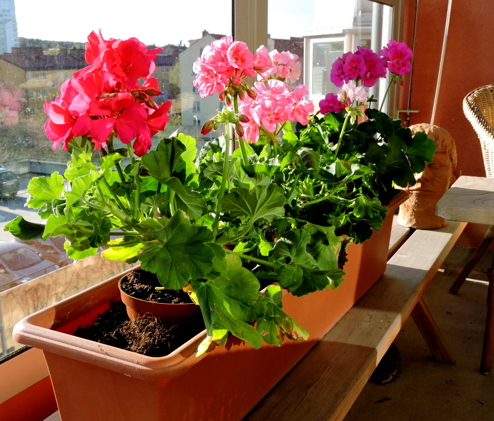 Pelargoniorna på balkongen kommer du säkert att få glädja dig åt länge.