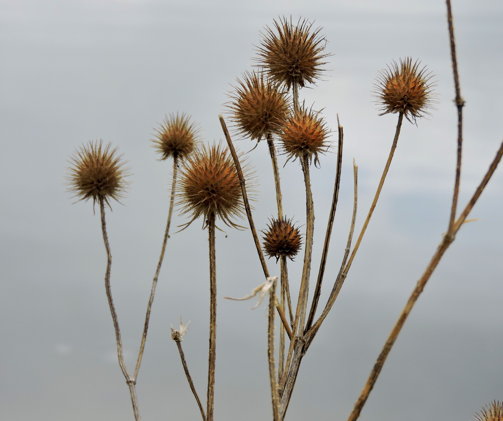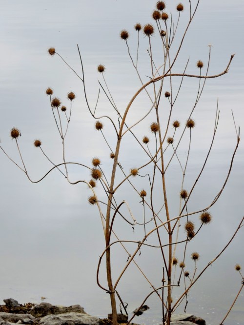 Fröställning utan namnskylt, kardborresläkting? vid stranden intill båtbryggan.