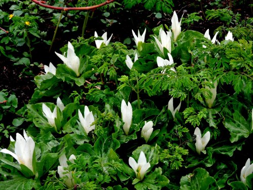 Päronblom och mycket mer finns just nu att förundras över, gullpudran blommar, Adonisen och flera treblad både vita och röda.