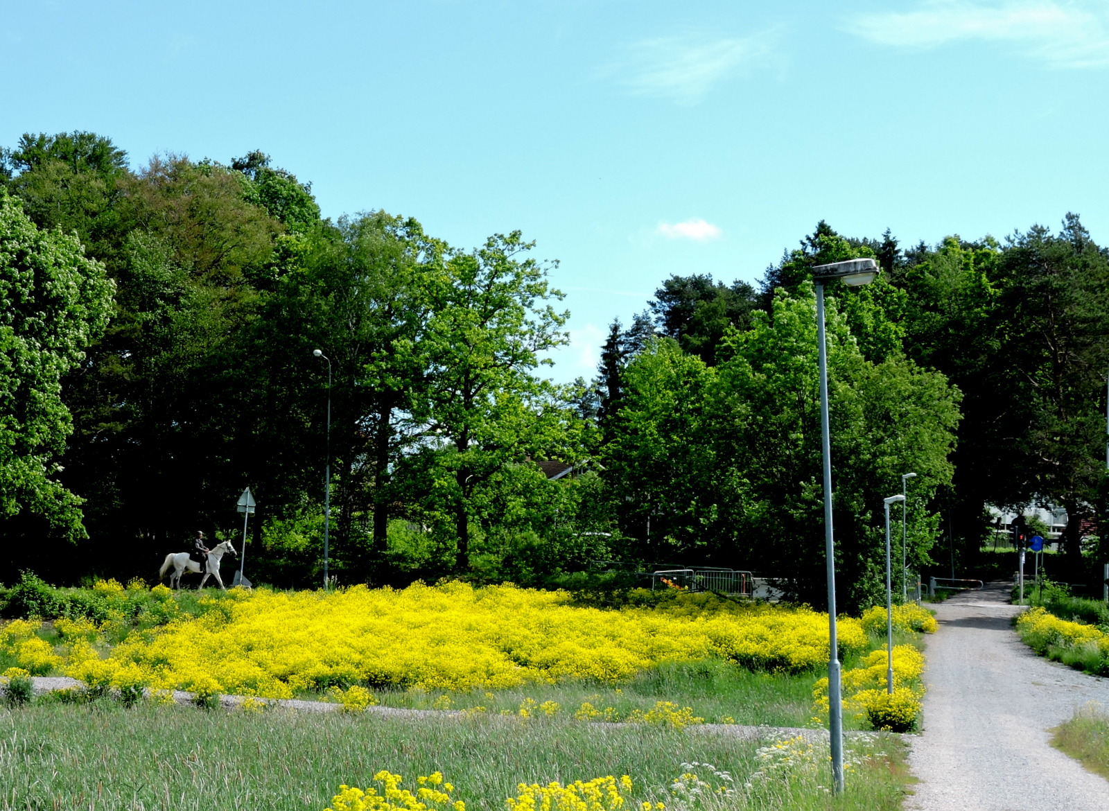När vi närmar oss prästgårdsmarken ser vi en ryttare på vit häst och vi kommer att möta honom.