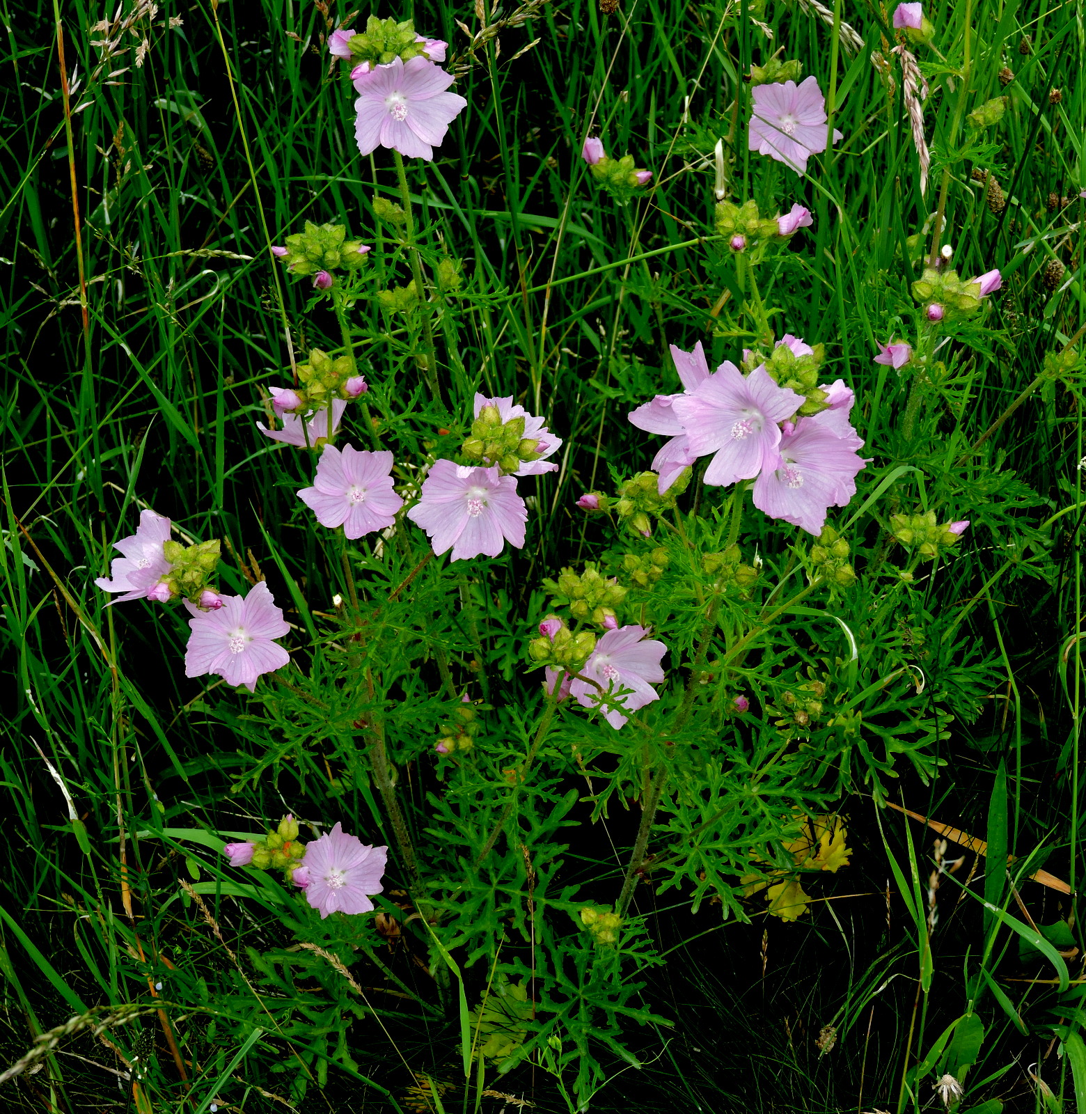 Vägen från rensdammarna utmed järnvägen fram till parken var kantad med ny blomning som avlöst ryssgubbarna från förra månaden. En rosa malva hejdade mej genast, men vilken? Bo Mossberg har illustrerat en myskmalva som jag tror stämmer på den här och den har växt i Ed. Trevligt att läsa var han hämtat alla sina avbildade växter och se att väldigt många kommer från Ed i Väsby.