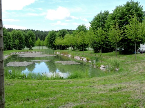 Alla de nysatta träden grönskar och dammarna har ännu kvar ytor som speglar omgivningen.