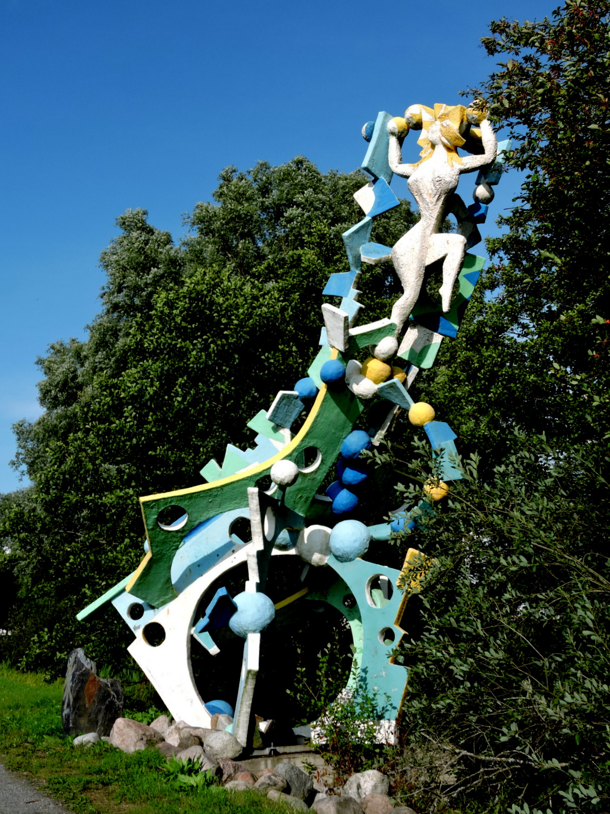 Axel Nordells plastskulptur i sin grop har förskönats med blå färg och det är rensat på marken även kring den.