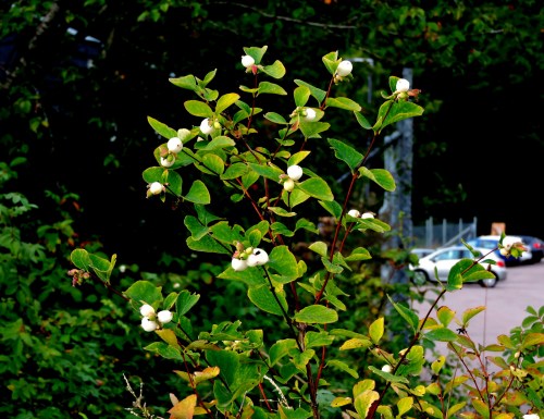 Tomterna söder om bilverkstan har fått nya industrihus och stängsel och innanför ett av dem trängs snöbärsbuskar med stora vita bär intill en kiosk på gården, men det är nog en annan variant än de som fanns överallt på 3o-talet, deras blad var mindre och mörkare.