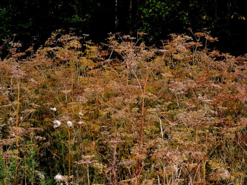 Koloniområdet är nu om möjligt ännu mer igenväxt, här med utblommad palsternacka .
