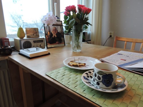 Hälsade på Ulla, en äldre släkting som levt under samma tid som jag, född på 20-talet, bor på äldreboende och sitter i rullstol. Jaa, här sitter jag och väntar på döden, säger hon och vill bjuda på en kopp kaffe, trycker på fel knapp så hela hemmet larmas och två personer kommer rusande. Men då kan vi ju vänta tillsammans ett par timmar, säger jag och så gör vi det. Ulla blev ensam då Nisse dog och allt funkar på äldreboendet utom maten, hon skulle kunna ha ett hyggligt liv men måltiderna är en pina.  Mat står ju för mer än födointag, det blir ett stort tomrum i omsorgen om maten är en smaklös klet.