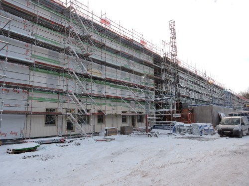 Alla lägenheterna sitter och tittar ut mot sjön med balkonger. Det enda positiva jag kan komma på är, det här slapp Lasse se.