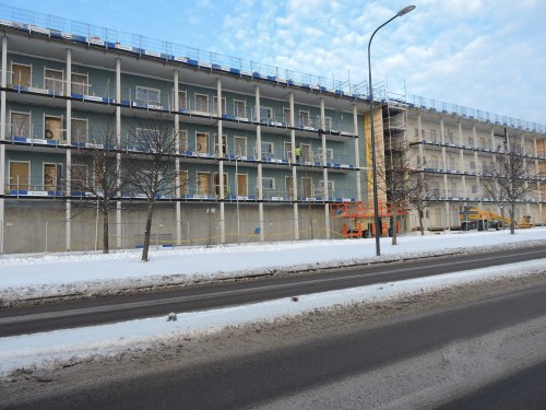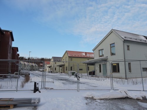 Man har placerat småhus i mängder så att de inte tar emot södersol och möjlig utsikt och sen har de lagt en höghusmur utmed allén som skär av all sikt mot sjön för alla småhusen som nu är instängda bakom betongväggen.