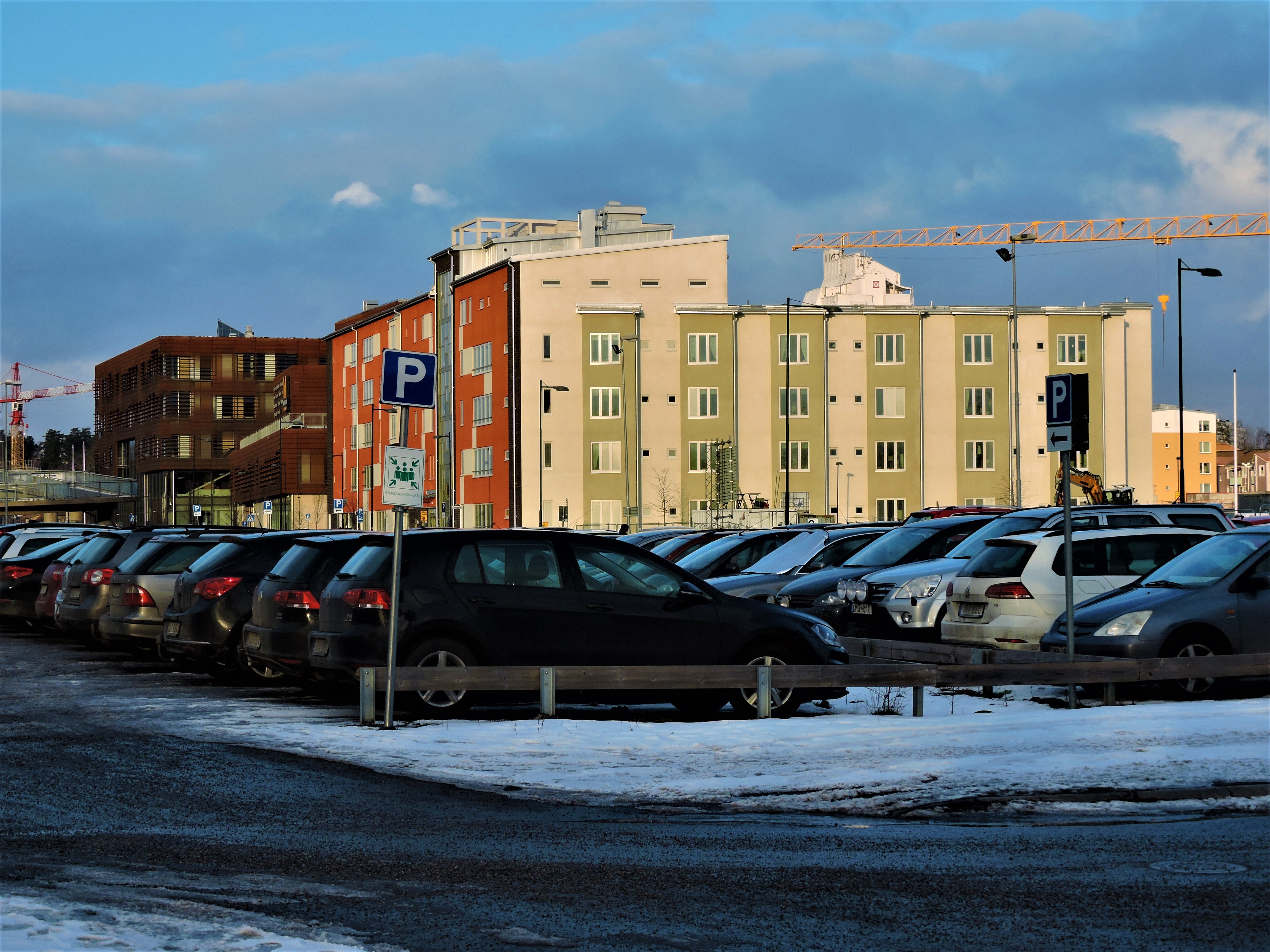 Så här prydligt blev huset med ungdomsbostäder som vi såg när de staplade rumsmoduler till i februari 2014.
