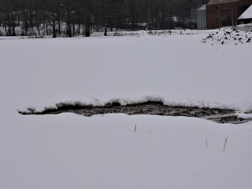 Ett tillflöde till sjön, det rinner upp flera pölar i åkern norr om sjön.
