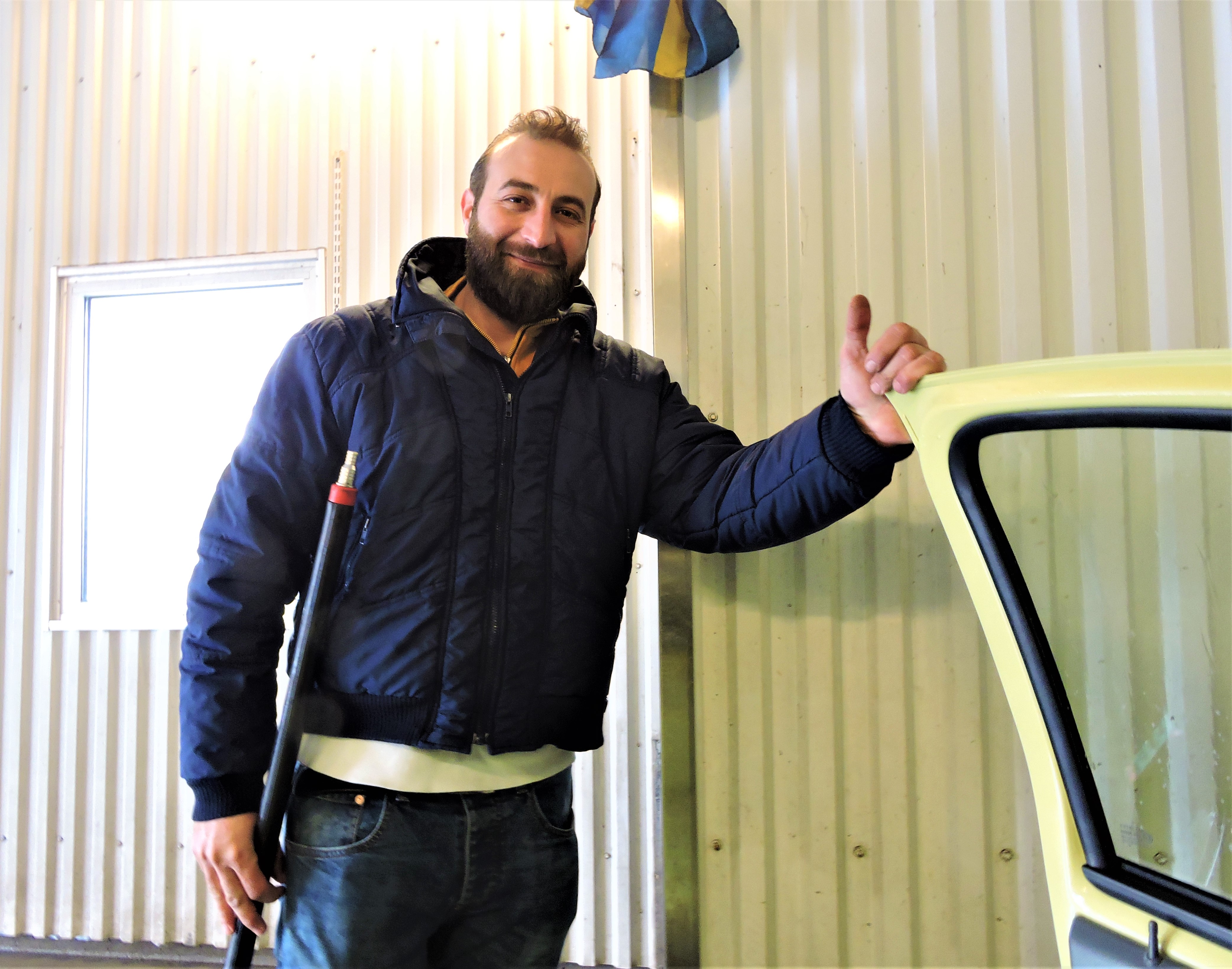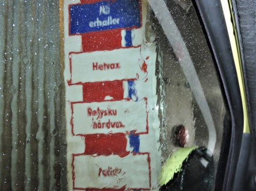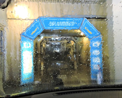 Bäst att ha fönstren uppvevade. Nu åker vi. Glädjens biltvätt.