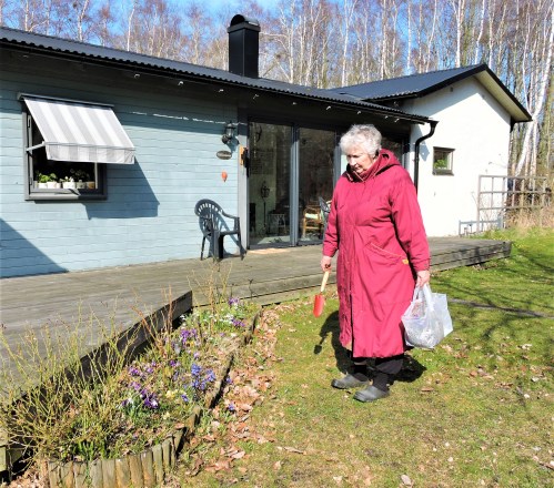 Fick en inbjudan från Annie på facebook, hon och Helmer bor nära stranden och jag var nyfiken på Annies trädgård, hur den klarat vintern. Trollhassel och krokusar blommade och i skogen runtomkring var ramslöken på väg upp i grön-gröna mattor. Efter gott kaffe med bullar och vaniljhjärta sa jag att jag skulle hem och såga. Vad ska du såga? Ved? Det kan du få av oss sa både Helmer och Annie och plötsligt fick jag ved i kassar som jag inte ens orkade lyfta. Då tog Helmer fram sin lilla lastbil, satte kassarna på flaket och körde med hem till myren och satte kassarna på trappan !! En stor varm överraskning, som på en en födelsedag. Och vilken ved sen och en knippa törestickor !